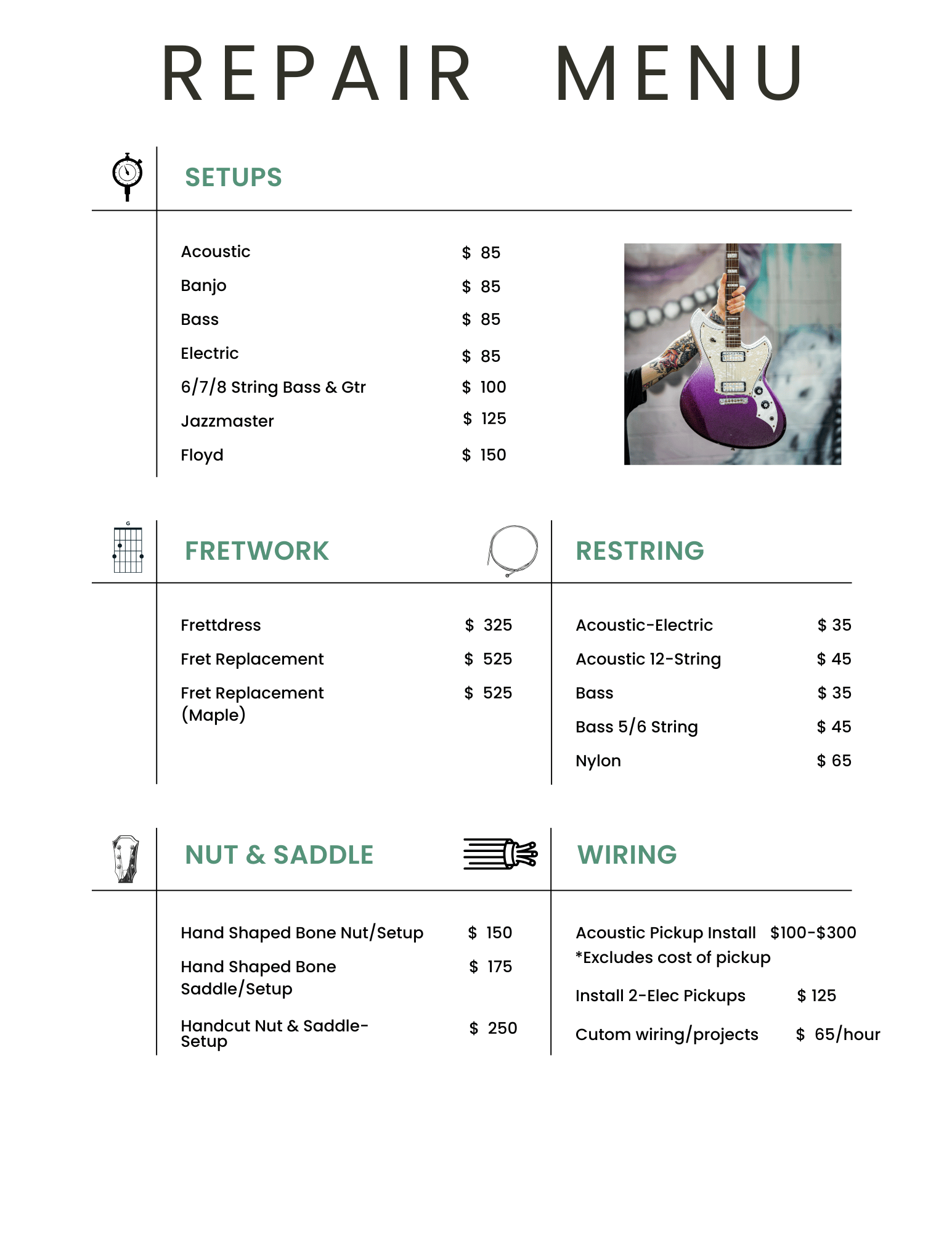 Midwood Guitar studio is now offering guitar setups and repairs