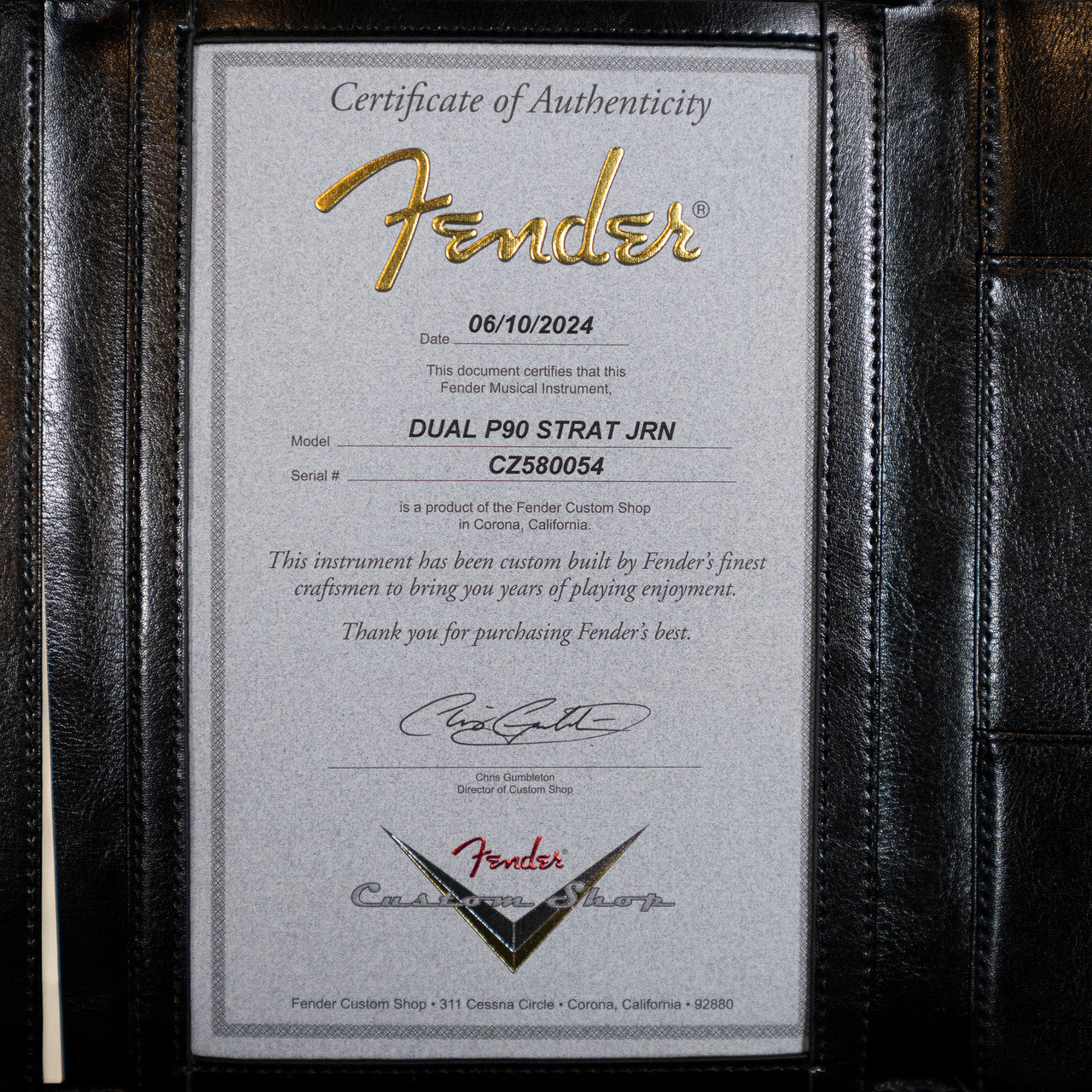 Now in on consignment, this 2024 Fender Custom Shop Limited Edition Dual P90 Stratocaster Journeyman is preowned and in excellent condition. A rare twist on the classic Strat, this model swaps the traditional three-pickup setup for a pair of Custom Shop P90s—delivering the punch, warmth, and bite of classic P90 tones inside unmistakable Strat style.