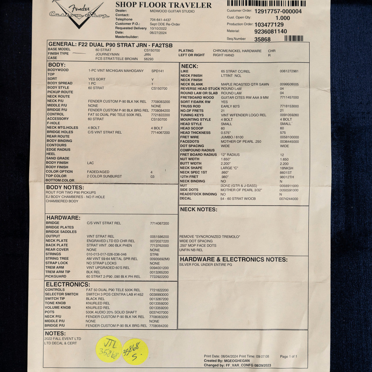 2024 Fender Custom Shop Limited Edition Dual P90 Stratocaster Journeyman - Faded Aged 2-Color Sunburst