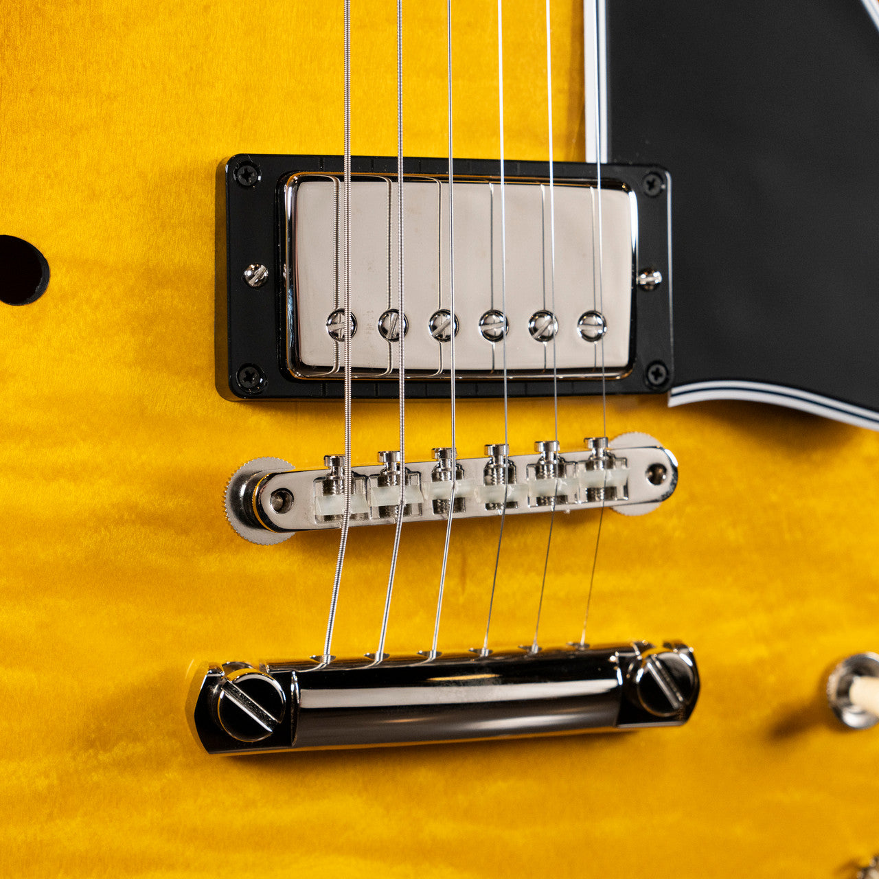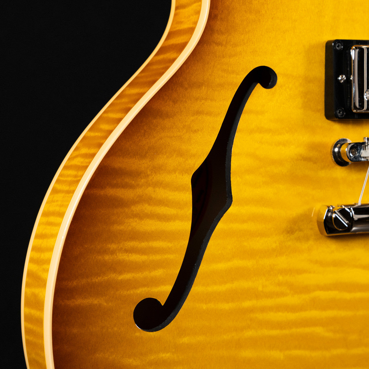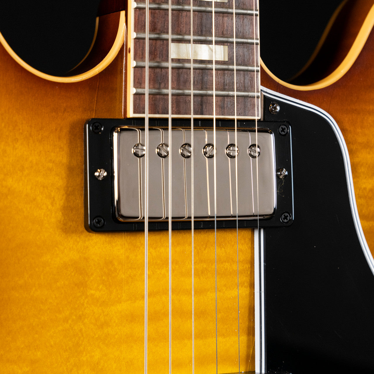 The rounded ’64 neck profile feels substantial yet comfortable, paired with a rosewood fingerboard and medium-jumbo frets for a smooth, classic feel. Under the hood, a pair of Custombuckers deliver warm, articulate tones that cover everything from sweet cleans to gritty overdrive. At just 7lbs 12oz, this semi-hollow is perfectly balanced and resonant, making it equally at home on stage or in the studio.