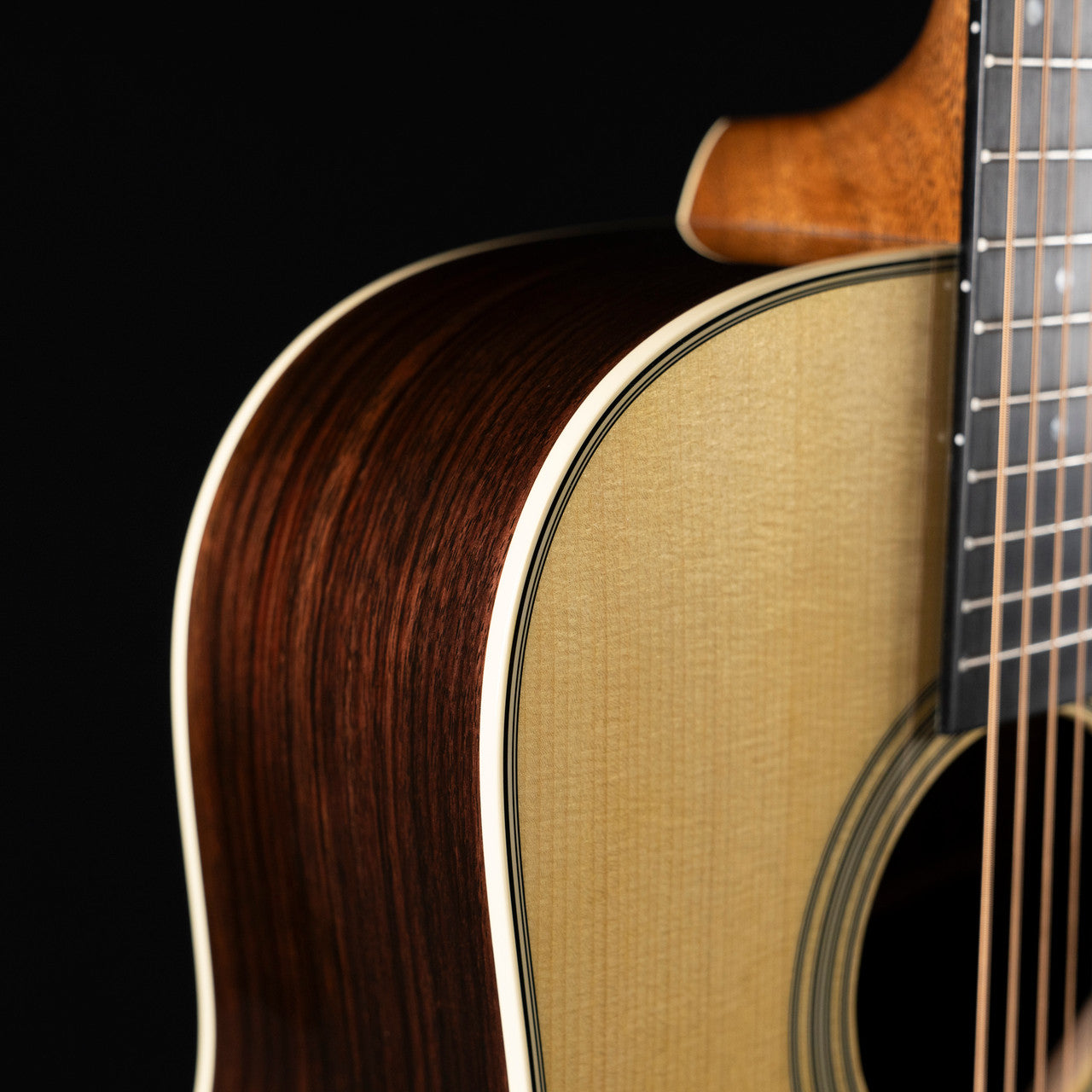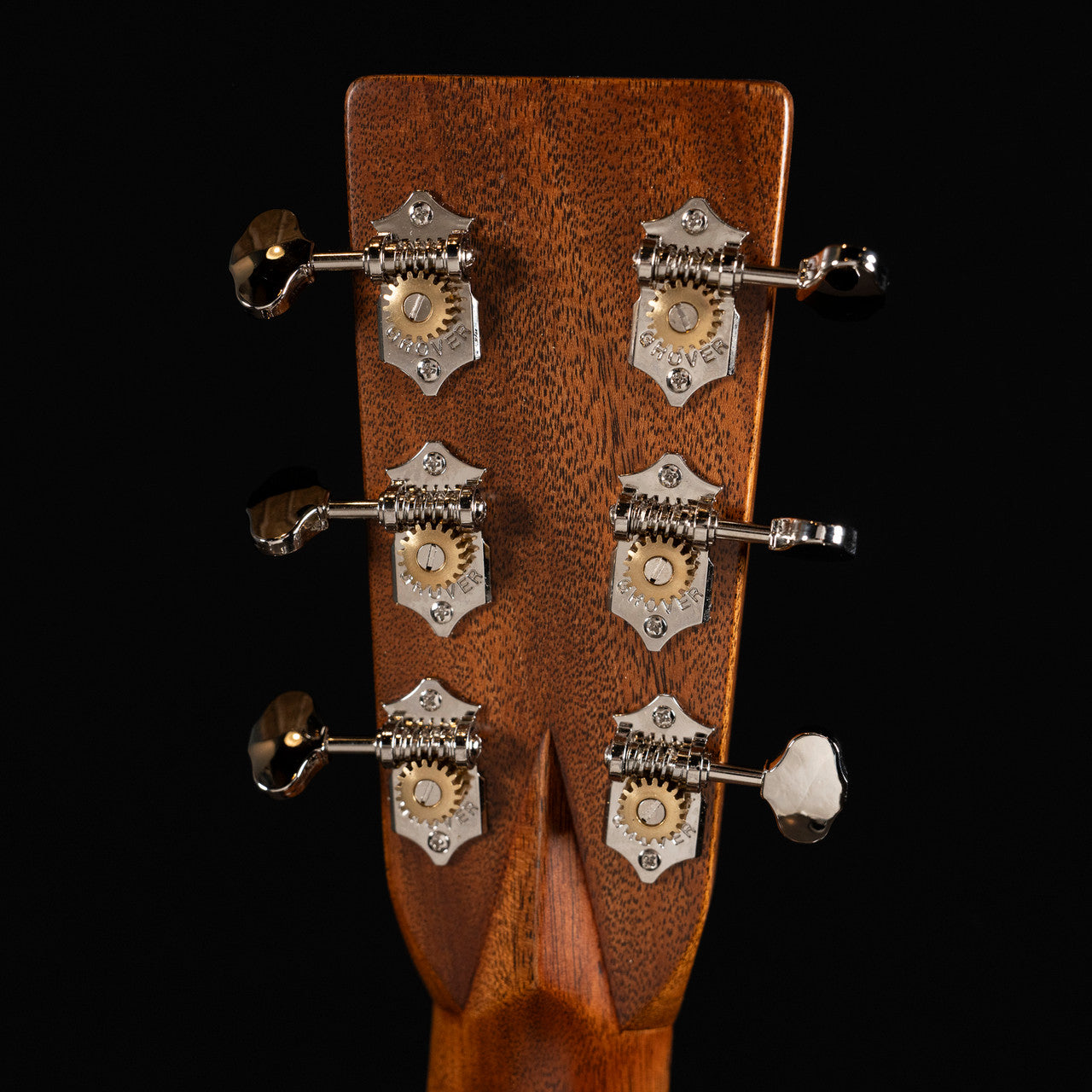 The braces are GE Scalloped and are forward shifted to increase projection. The tone is very lively and balanced; rich bass and sweet highs with plenty of definition in the mid-range. The 1 ¾” nut makes it easier to make the most out of this exquisite note separation, and the full, but tapered neck profile fills and guides the hand beautifully.