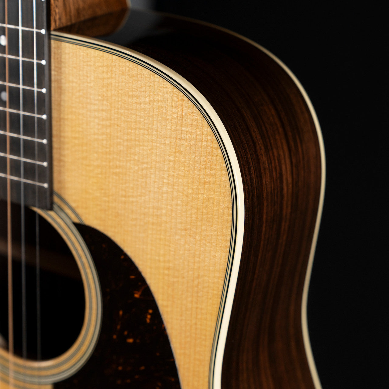 The Martin D-28 is widely regarded as the most iconic acoustic guitar in the world, trusted by generations of players and played by countless legends across genres. Its Dreadnought body size and scalloped bracing delivers the bold, projective tone with strong bass, clear trebles, and rich overtones that has defined acoustic music for nearly a century. Handcrafted with a solid spruce top and solid East Indian rosewood back and sides, the D-28 produces a resonant voice that’s beautifully balanced for all playing styles. The satin neck, featuring a Golden Era (GE) Modified Low Oval profile, high-performance taper, and 25.4" scale length, ensures smooth, effortless playability. With antique white binding, an ebony fingerboard with mother of pearl dot inlays, an ebony bridge with bone pins, and nickel open gear tuners, the D-28 blends timeless craftsmanship with modern playability. Available in a variety of gloss and satin options, the D-28 is the guitar you can trust to unleash the artist within.