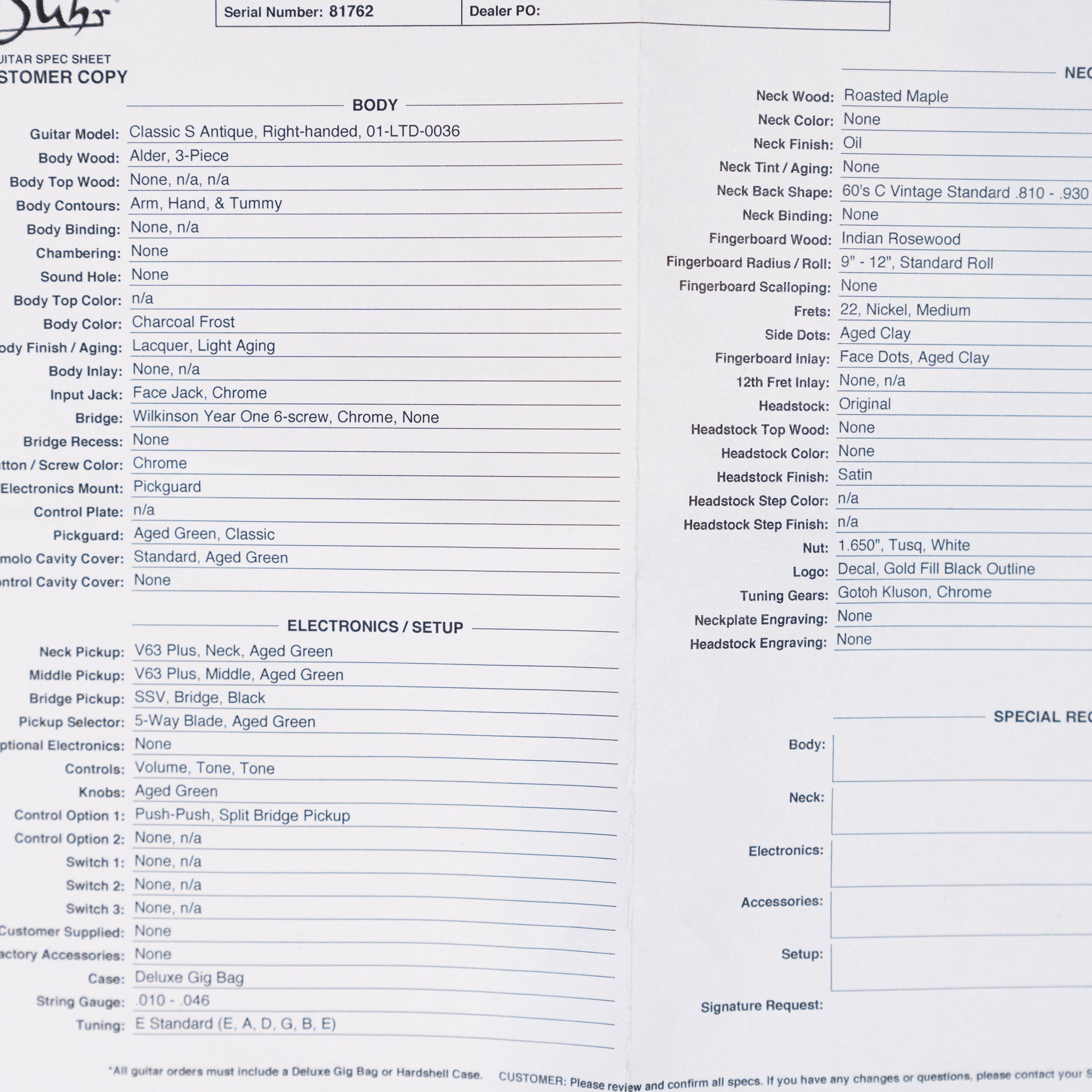 2025 Suhr Limited Edition Classic S Vintage Electric Guitar - Charcoal Frost