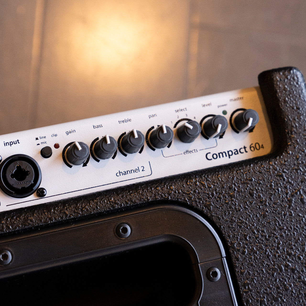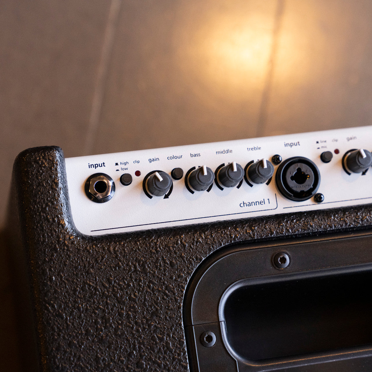 A customized 8 “twin cone loudspeaker and 60 watts RMS output power, sufficient to dynamically and powerfully amplify your instrument in every rehearsal room and on club stages.