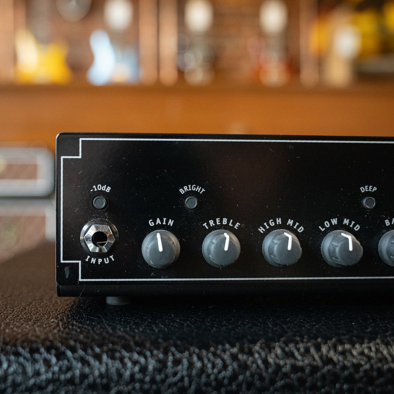 Take the legendary AG 500, give it more low end and near-limitless headroom, and you've got the Aguilar AG 700. Treble, Hi Mid, Lo Mid, and Bass controls ensure ample sound shaping, while Deep and Bright EQ switches provide broadband boosts. Integrate your favorite pedals with a series effects loop and take your sound straight to the board with an XLR balanced output. And all of this is packed into a lightweight 4.9 pound package!