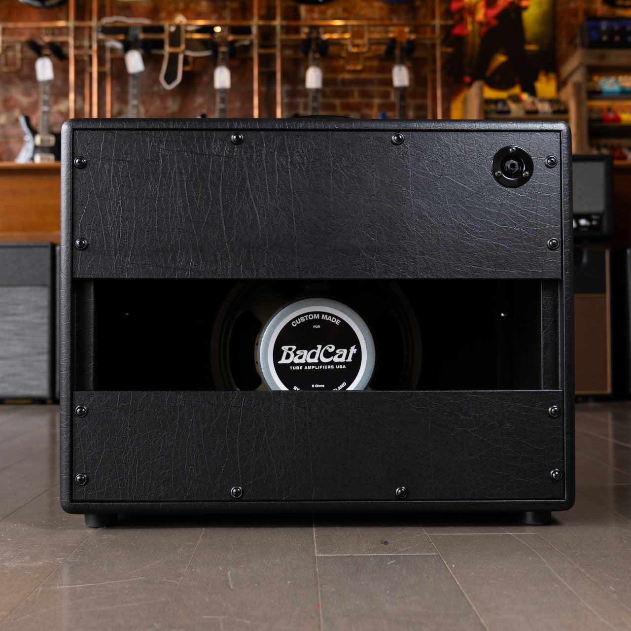 The Bad Cat Black Cat 1x12 Extension Cabinet-Black cabinet is a mid-size, open back design built for perfect pairing with the Black Cat Head or as an addition to the Black Cat Combo. This 1x12 enclosure gives a surprisingly big, full sound for its size and comes loaded with our proprietary Celestion Bad Cat V30 speaker that sings with incredible detail and definition.