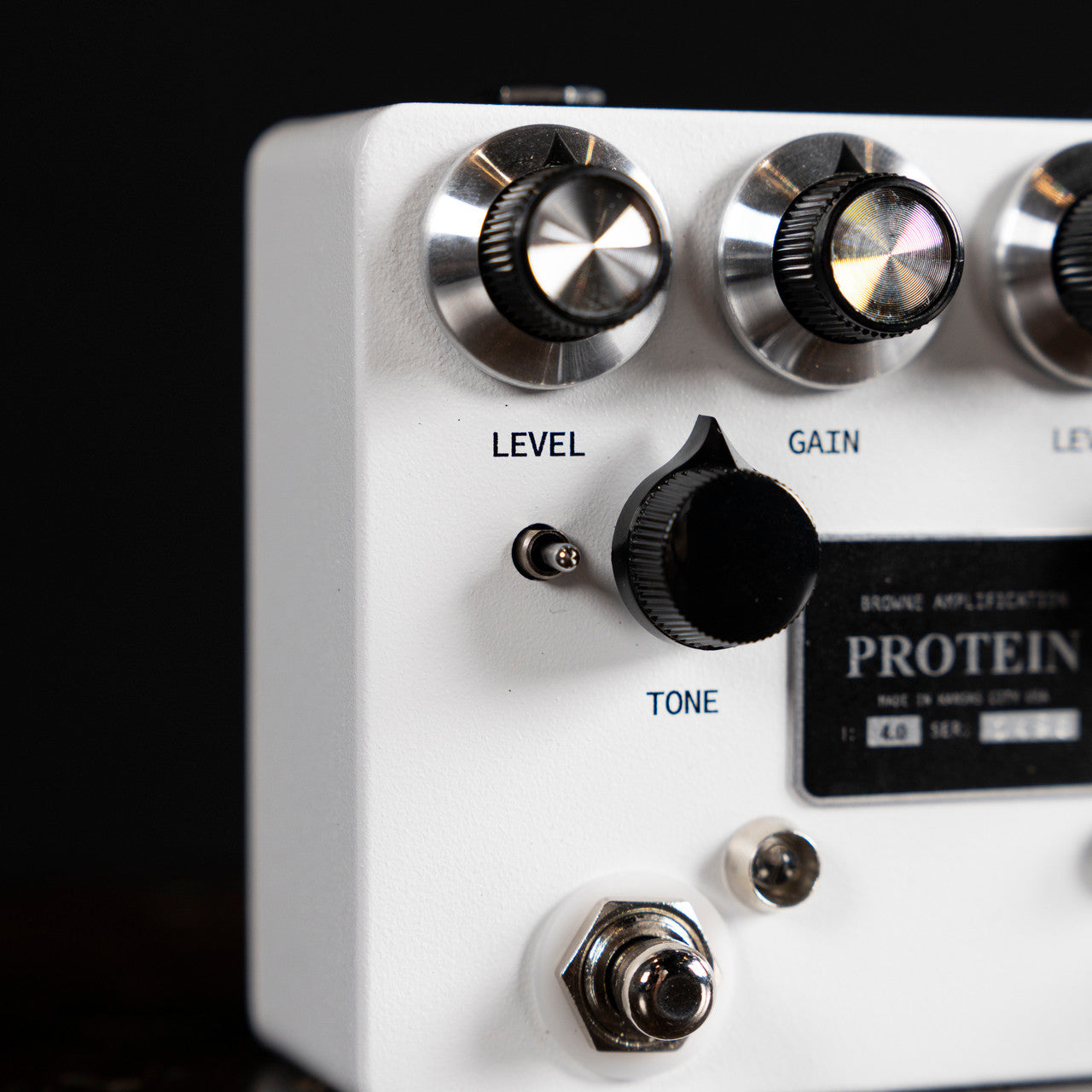 The Protein Dual Overdrive V4 is a collaboration between David Brown and guitarist/producer Adam Sniegowski. After years on the road and in the studio using unpredictable backline amps, Adam approached Dave with a goal: create a dual overdrive that would sound great no matter what it was plugged into. They started with two drives they loved—ones that stacked well but had a few quirks—and set out to fix those issues without losing the soul of the originals.