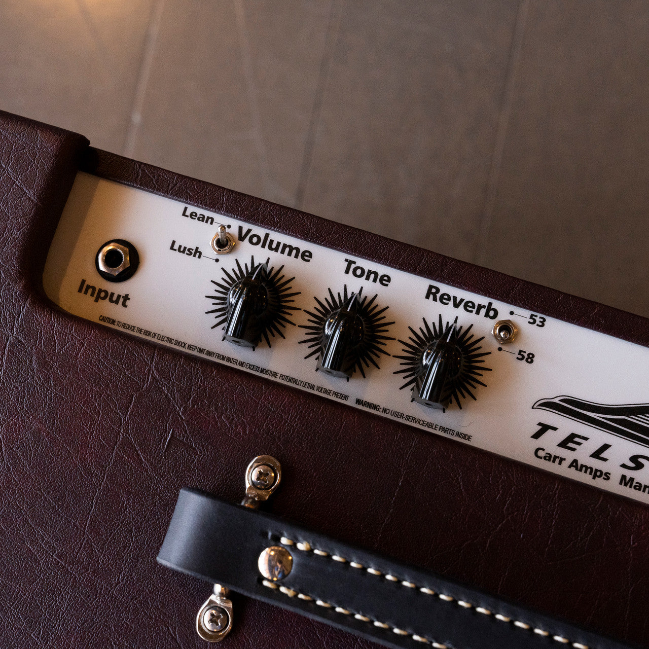 The Carr Telstar Combo Amplifier is a true modern classic—hand-built, dripping with vintage soul, and dressed to impress in stunning custom Wine tolex. With 17 watts of power and a Carr Valiant 12” speaker, it delivers rich, responsive tones perfect for both the stage and the studio.
