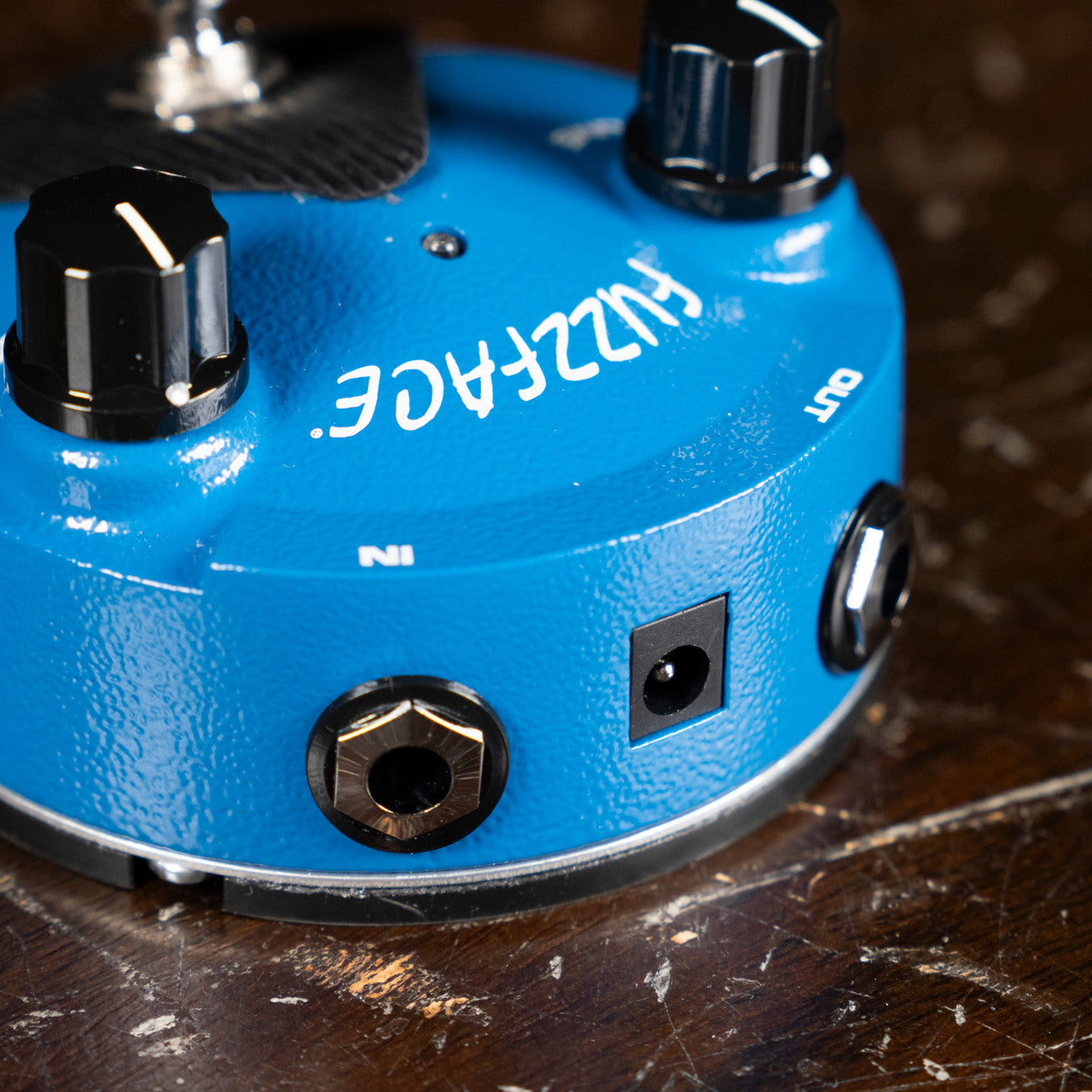 The Fuzz Face Mini Distortion line features legendary Fuzz Face tones in smaller, more pedalboard-friendly housings with several modern appointments: a bright status LED, an AC power jack and a convenient battery door. As with the original models, Fuzz Face Minis feature true bypass switching.