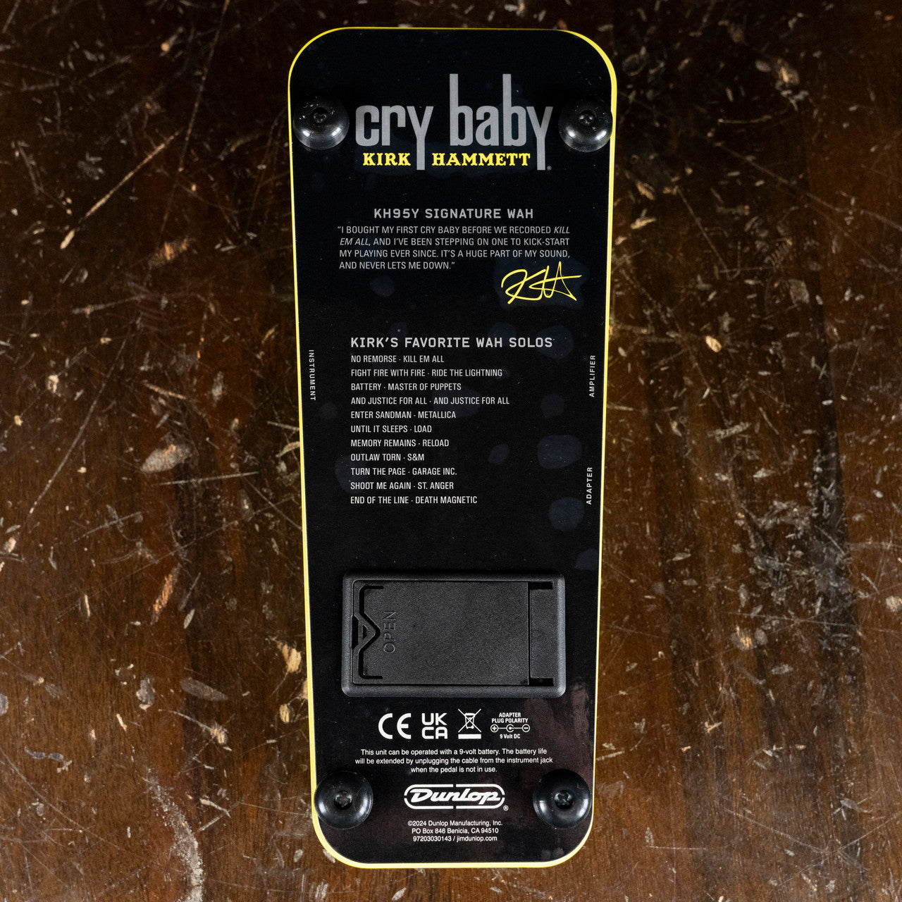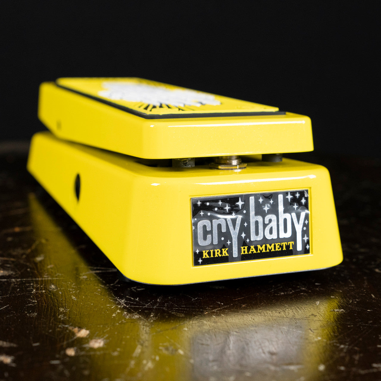 This Dunlop Kirk Hammett Cry Baby Wah-Yellow Sparkle Edition delivers the heavy metal legend’s signature Wah tones in a special yellow sparkle finish. It’s based on Kirk’s own Cry Baby Rack Wah settings, recreating the sound that he used to fire up the licks that revolutionized metal solos. It offers an even response from heel to toe with an arresting midrange wail and a thick top end—perfect for fast, melodic runs over hard-charging riffage. Dare to step into the footprint of a giant. Own a piece of the legend: the Kirk Hammett Cry Baby Wah from Dunlop.