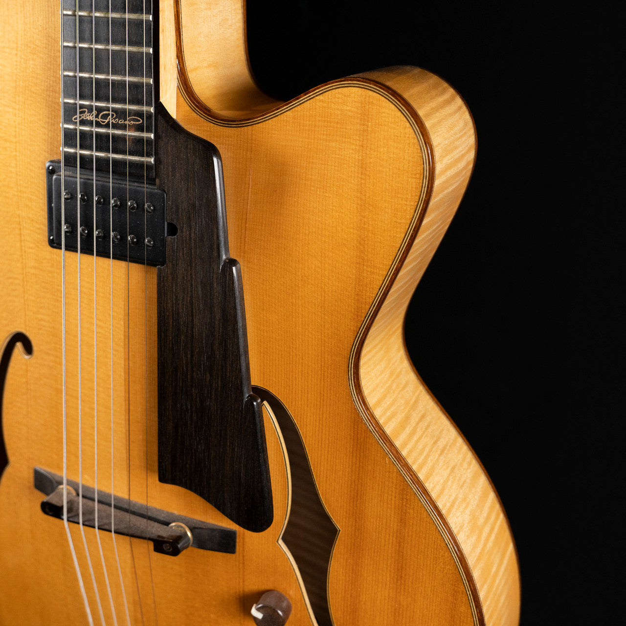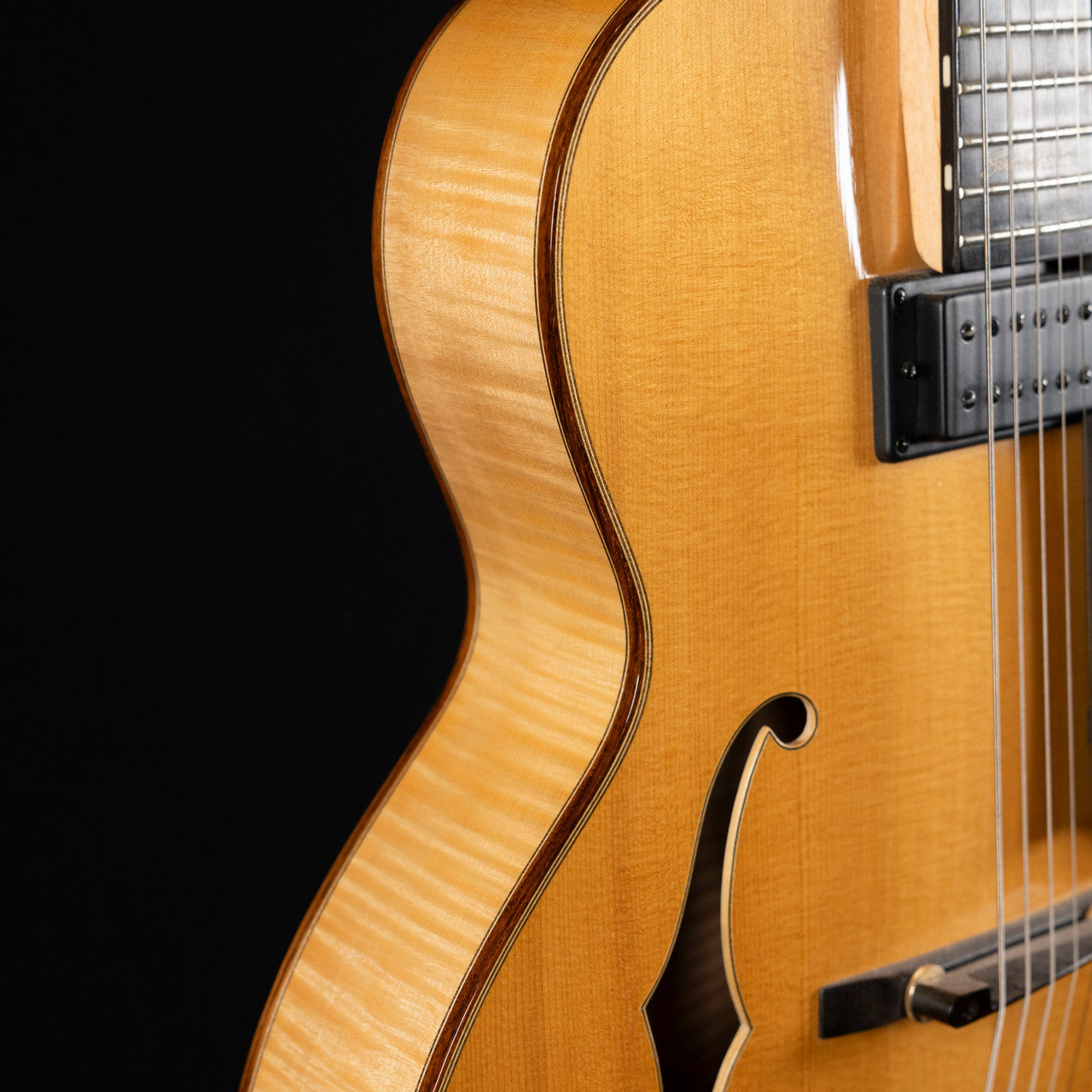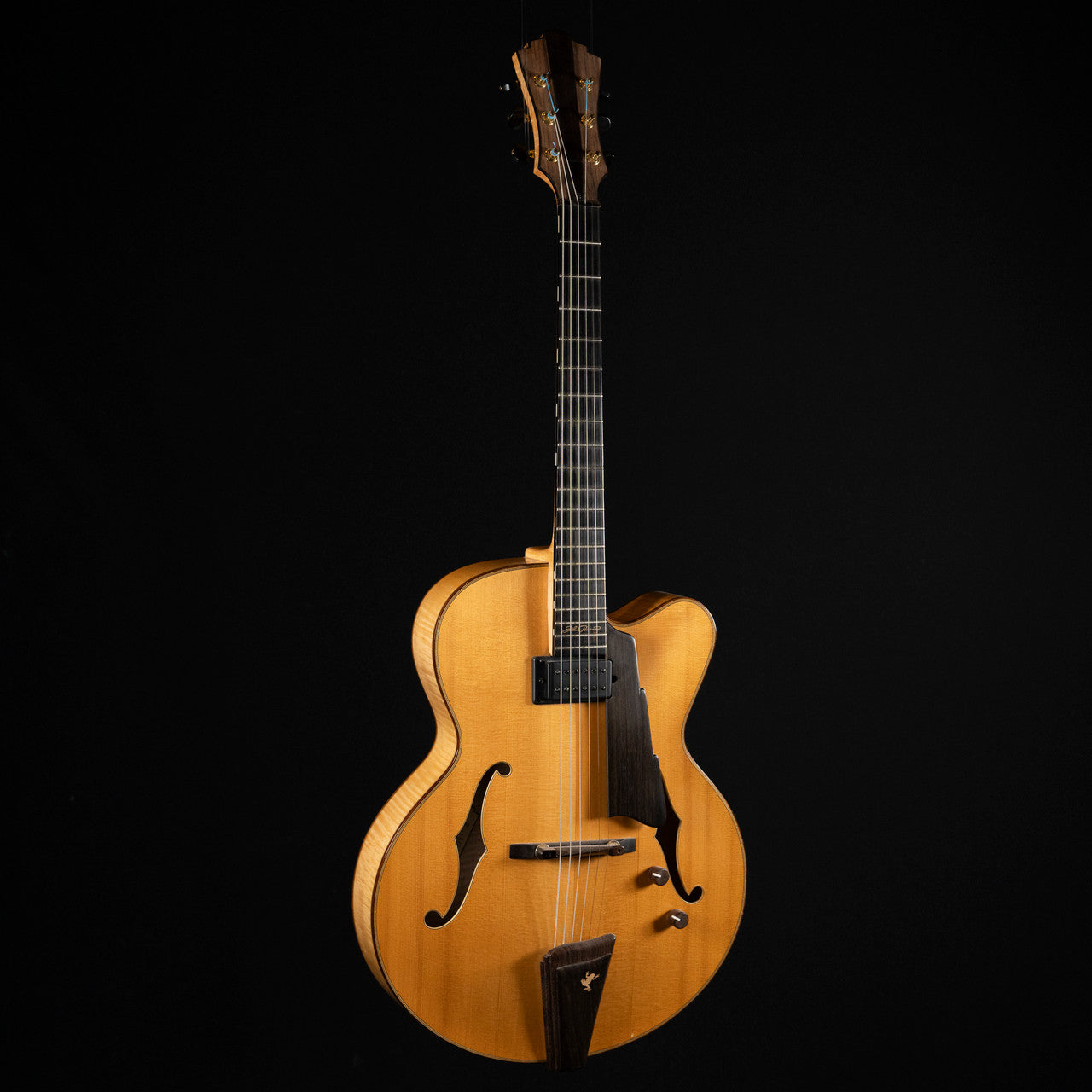 Featuring a 16" jazz archtop body with a solid spruce top and solid flamed maple back and sides, this guitar provides warm, resonant tones and excellent projection perfect for jazz, blues, and classic styles. The ebony fingerboard with a traditional even C-shaped maple neck ensures smooth, comfortable playability, while premium hardware including gold Schaller tuners and ebony Pisano-style tailpiece adds elegance and stability.