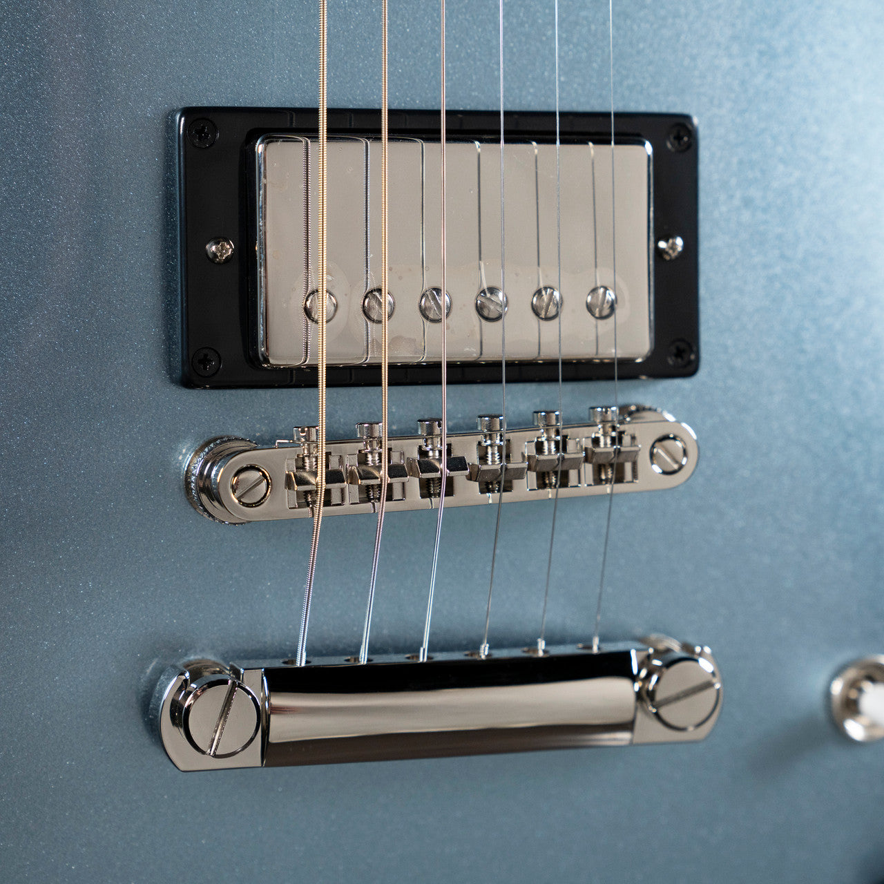 Just in, the Epiphone Dave Grohl DG-335 Semi-Hollow Electric Guitar in Pelham Blue. Featuring a layered maple/poplar body construction with a maple centerblock, an elliptical C shape neck with a Laurel fingerboard, a set of Gibson USA Burstbuckers, and the Trini Lopez-style headstock. The DG-335 is a rocking machine, capable of handling anything you throw its way. The neck plays like a dream all the way up the fingerboard while the USA Burstbuckers provide a strong range of classic rock and blues tones. The Epiphone inspired by Gibson line has been producing some of our favorite guitars here at the shop, and this one is incredibly fun to play. Comes with a hardshell case.