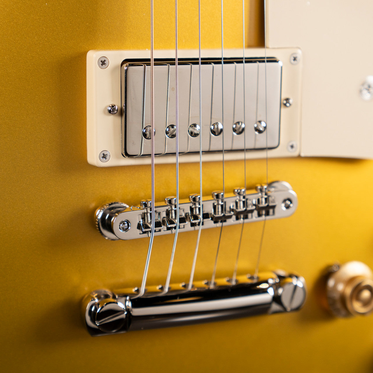 Step into the timeless tone and golden era of electric guitar design with the Epiphone Inspired by Gibson Custom 1957 Les Paul Standard Goldtop Resissue. With a striking Vintage Gloss finish and era-accurate appointments, this reimagined classic delivers the tone, feel, and soul of a true '57 Les Paul—at a fraction of the price. Whether you're chasing vintage bluesy warmth or thick, harmonically rich leads, this Goldtop is more than a guitar—it's your personal time machine.