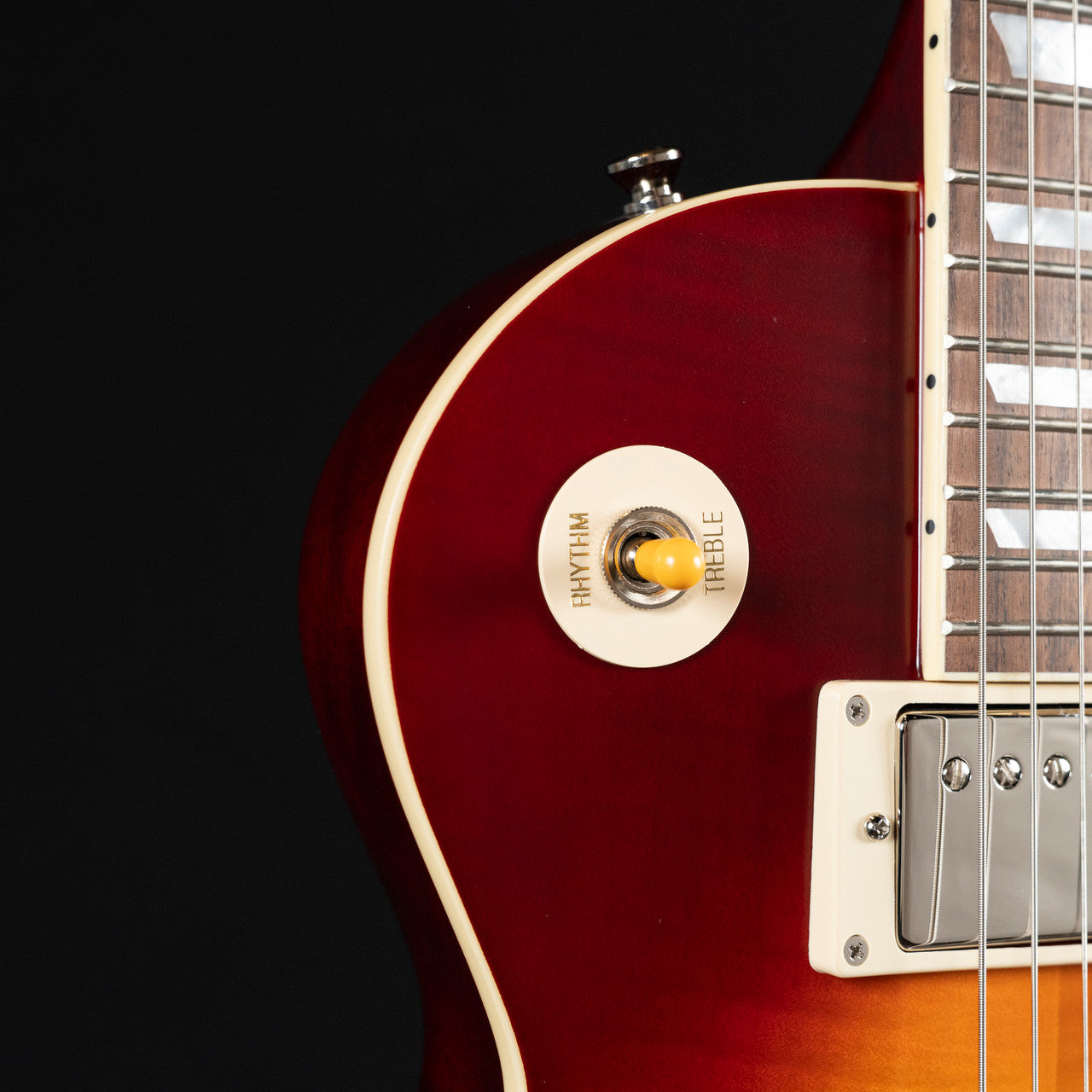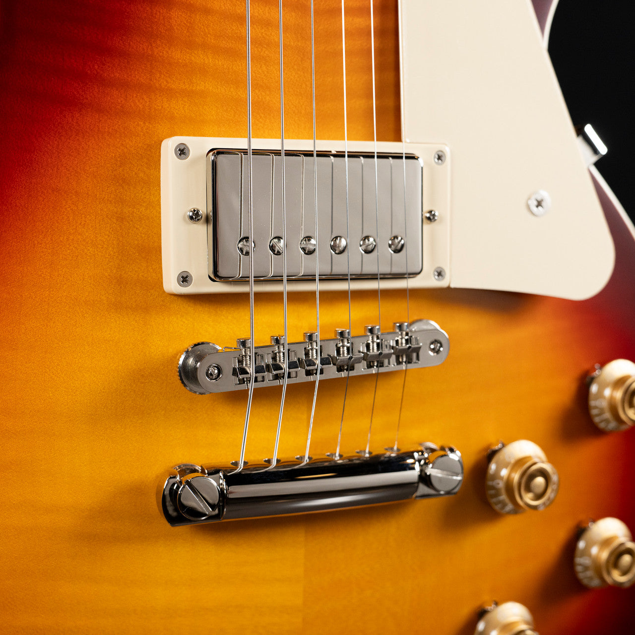 The Epiphone Inspired by Gibson 1959 Les Paul Factory Burst captures the essence of one of the most revered guitars in rock history, delivering an exceptional combination of vintage tone, aesthetics, and modern craftsmanship. This model features a classic carved maple top and a solid mahogany body, giving it that rich, warm tone with excellent sustain and clarity. The Alnico Classic Pro humbuckers provide that signature Les Paul punch, with smooth cleans and heavy, powerful distortion that defines the iconic sound. The mahogany neck and Indian laurel fretboard offer smooth playability with a comfortable, slightly rounded "C" profile, making it ideal for both rhythm and lead work. Finished in a stunning "Factory Burst" color, this Epiphone Les Paul brings the vintage vibe to a more affordable level while maintaining the high standards of playability and tone that Epiphone is known for.