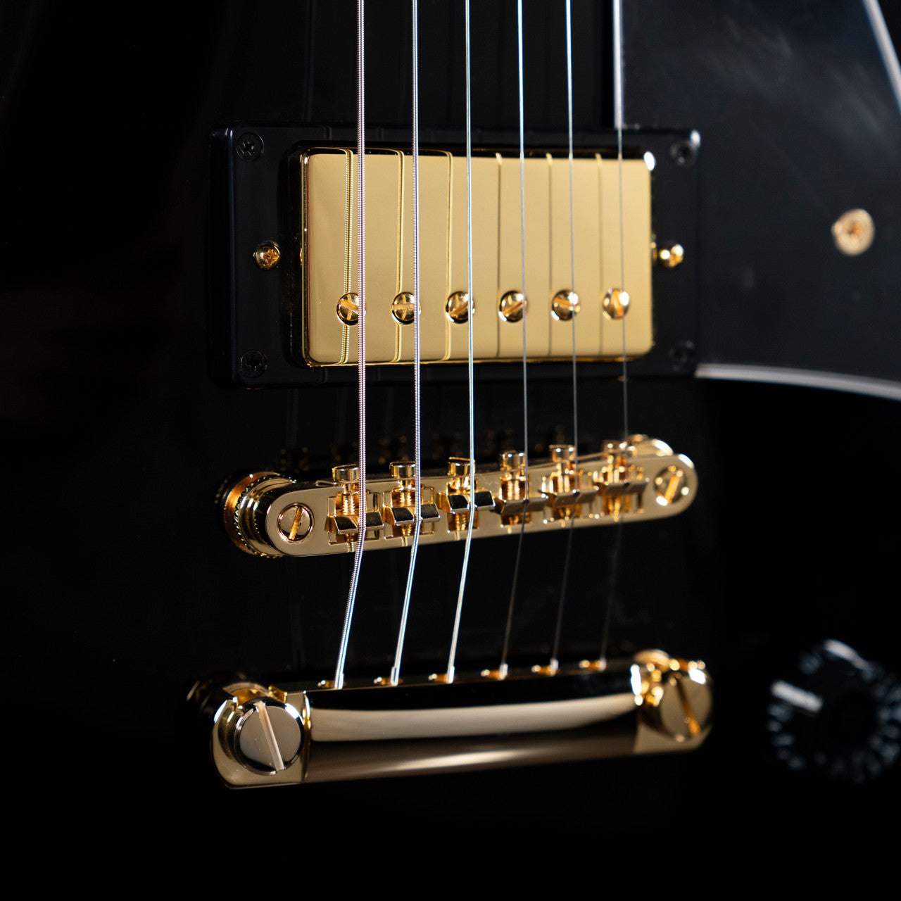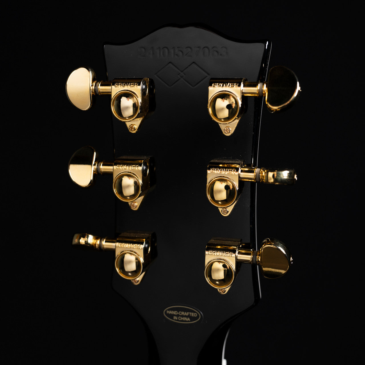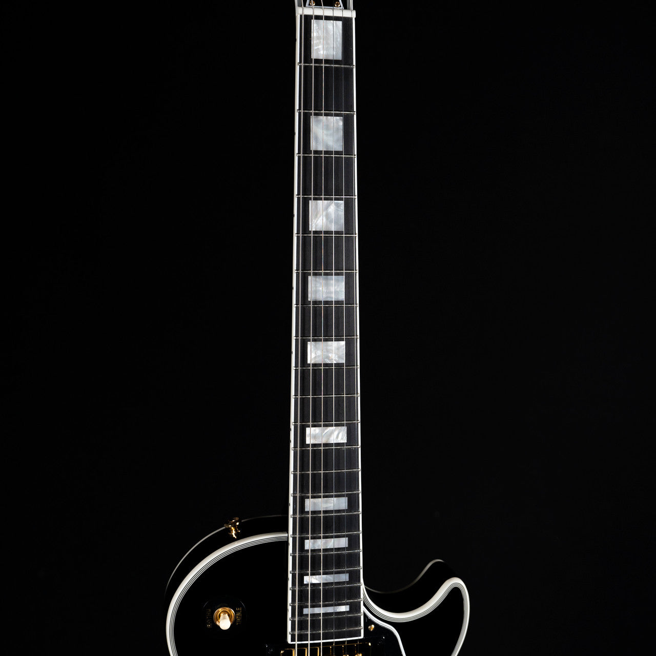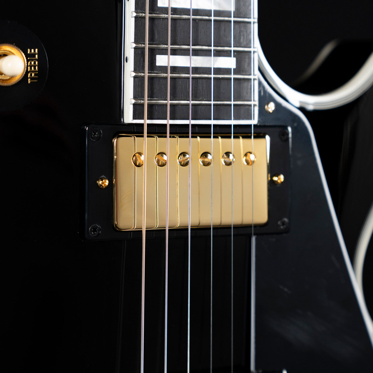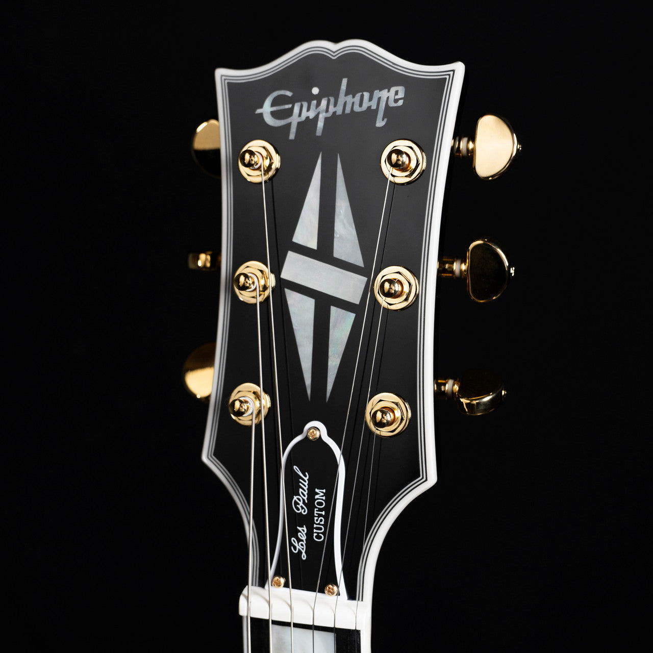 As part of the ongoing collaboration with Gibson™ Custom, Epiphone is proud to introduce the flagship Les Paul™ Custom to the Inspired by Gibson Custom lineup. Replete with all of the classy “tuxedo” appointments that the model is known for, this beautiful guitar has a one-piece mahogany neck with a Modern Medium C profile, an ebony fretboard, and mother-of-pearl block fretboard inlays. There are also mother-of-pearl split diamond and Epiphone logo headstock inlays on the Gibson-style “open book” headstock. Gold hardware, including Grover® Rotomatic® 18:1 gear ratio tuners, gives it even more visual appeal. The solid mahogany body has a maple cap for a touch of added sonic bite, while the Gibson USA 490R and 498T pickups provide tonal sophistication and plenty of muscle to back up all the beauty. They’re hand-wired to CTS® potentiometers, a Switchcraft® output jack and pickup select switch, and Mallory™ capacitors. An Inspired by Gibson Custom double diamond logo is on the back of the headstock, and a black hardshell case with the Inspired by Gibson Custom logo and a goldenrod interior is also included.