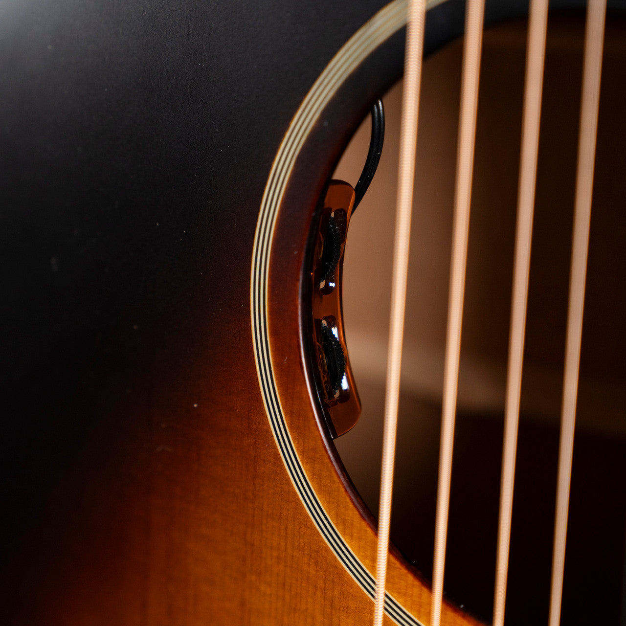 Epiphone, in partnership with Gibson™ Custom, is proud to introduce the Epiphone 1942 Banner J-45™, an incredible recreation of the legendary original “Workhorse” model from 1942. This exceptional acoustic guitar has a thermally aged, solid spruce top, solid mahogany back and sides, and a one-piece mahogany neck with a laurel fretboard, a V-shaped profile, and mother-of-pearl dot inlays. The headstock features the world-famous Gibson “open book” profile and has the Inspired by Gibson Custom double diamond logo etched on the back and an “Epiphone Inspired by Gibson” banner on the front. It is stage and studio-ready with the built-in L.R. Baggs™ Element Bronze VTC preamp and under-saddle L.R. Baggs Bronze piezo pickup system and a hardshell case with the Inspired by Gibson Custom logo is also included.