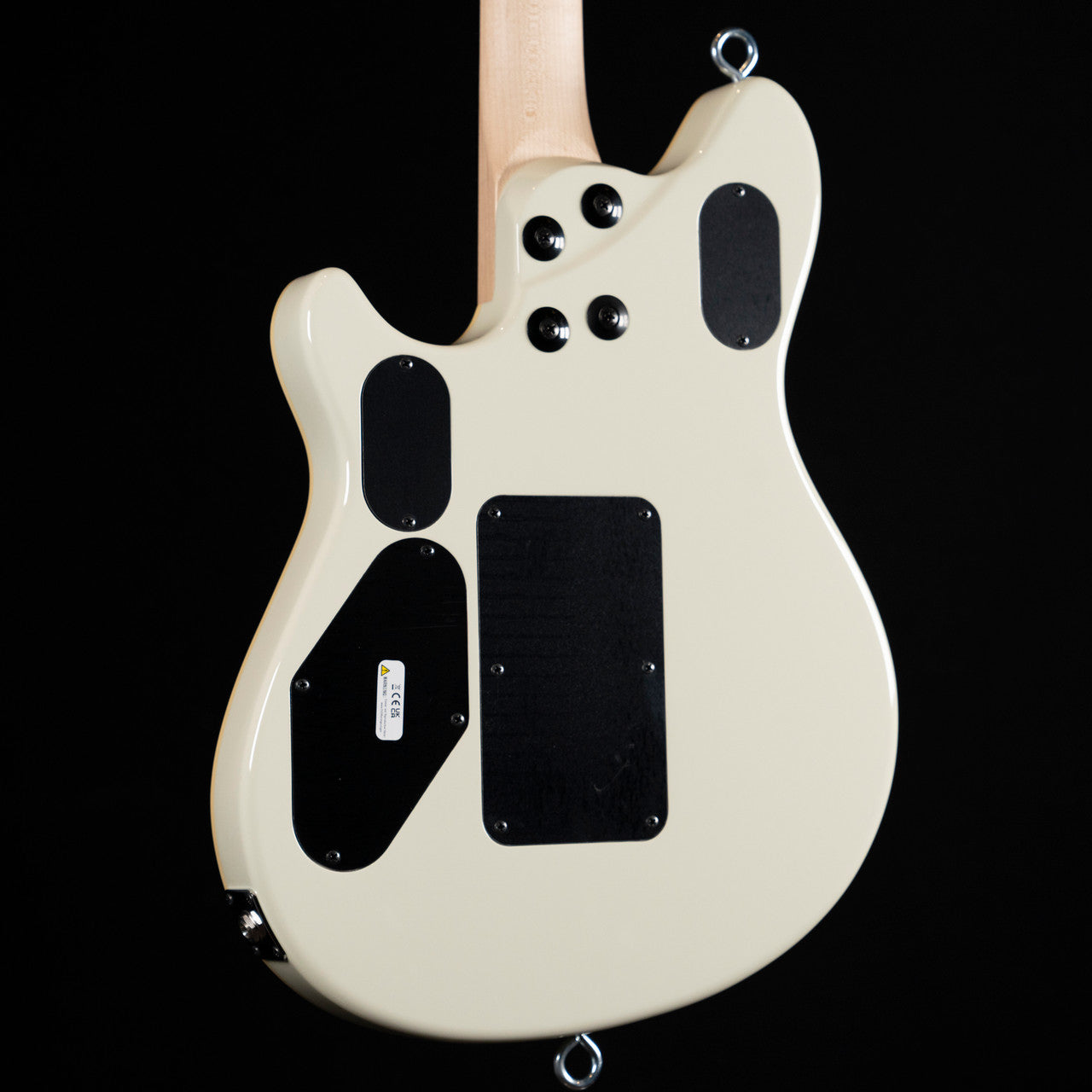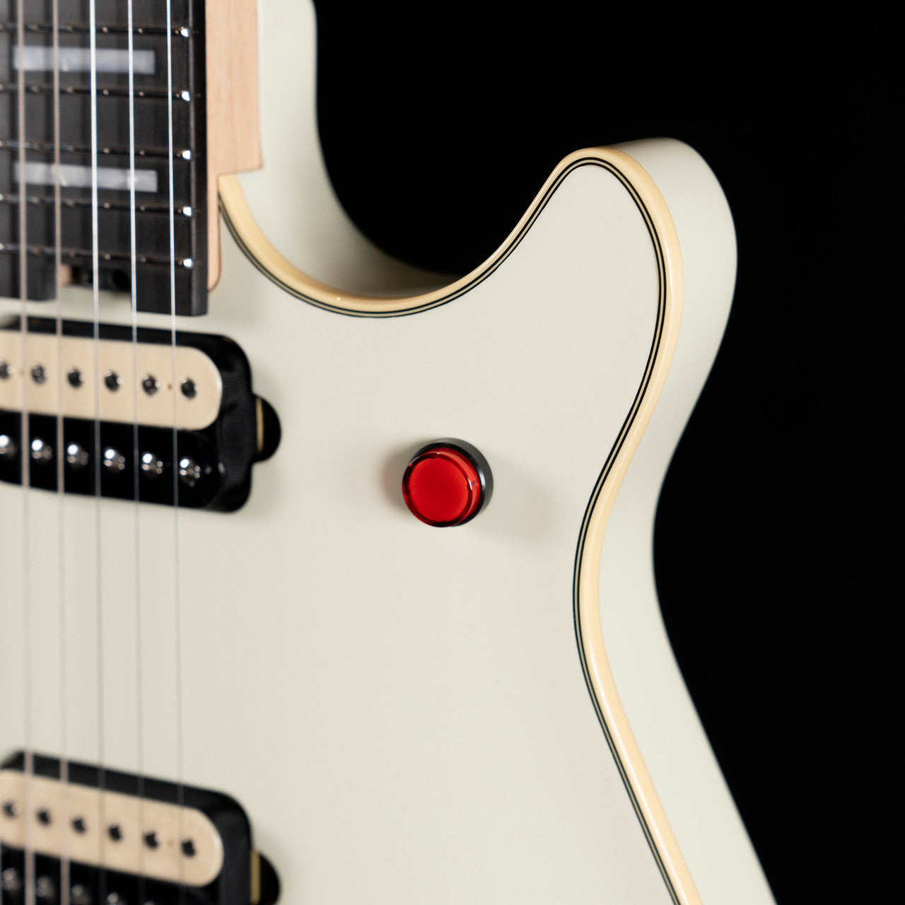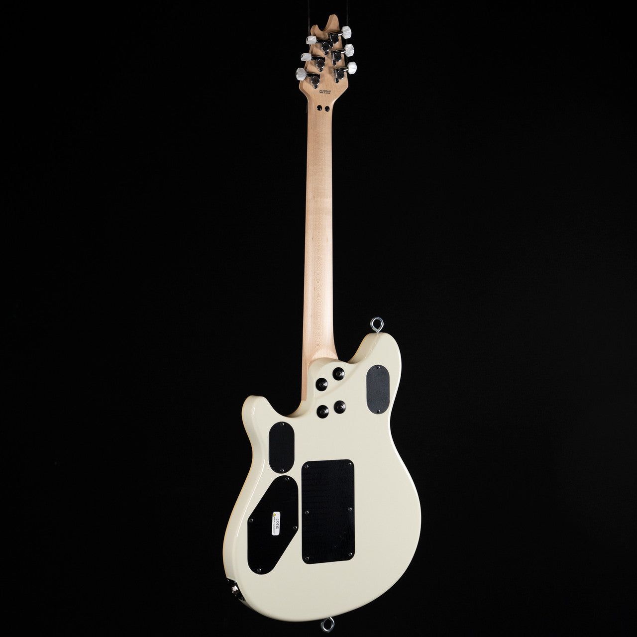 The all-new MIJ Series EVH Signature Wolfgang® is offered in Ivory or Stealth Black finishes, each with cream body binding, black knurled control knobs, chrome eye hook strap buttons and black headstocks. The Ivory finish features pearloid block inlays and chrome nut, retainer bar and tuners, while the Stealth finish features pearloid dot inlays, chrome nut, black retainer bar and black tuners.