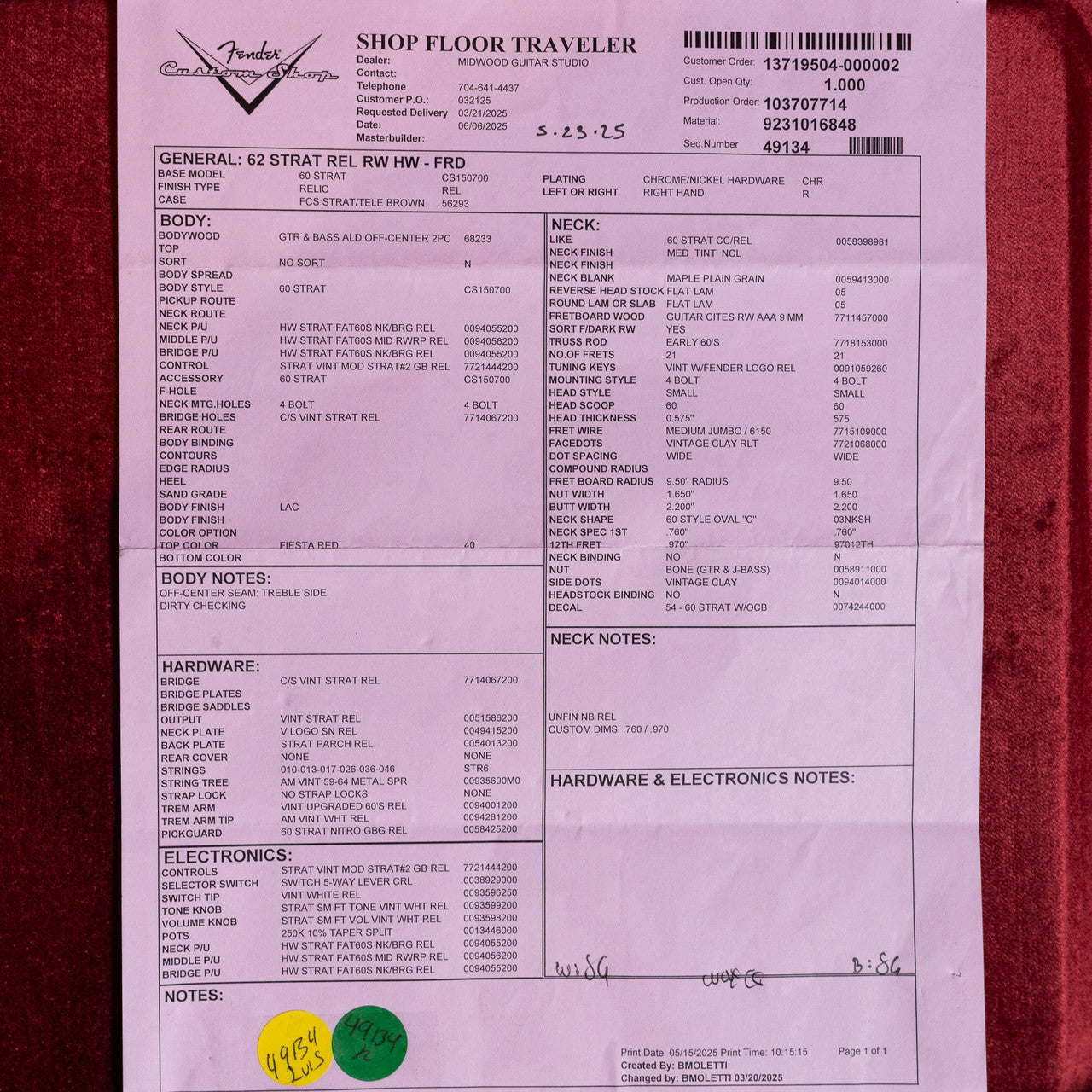 Fender Custom Shop 1962 Stratocaster Relic - Fiesta Red