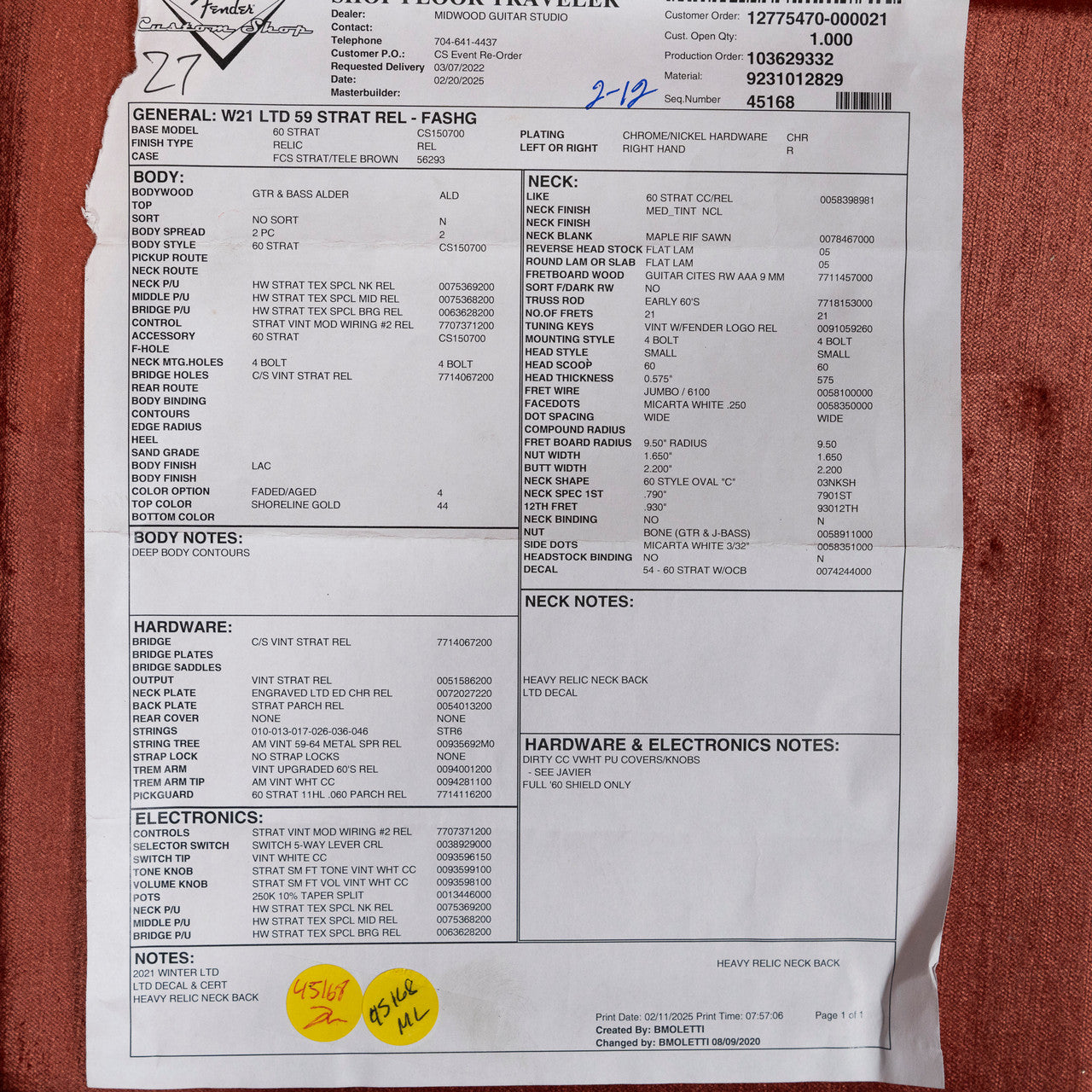 Fender Custom Shop Limited 1959 Stratocaster Relic - Shoreline Gold