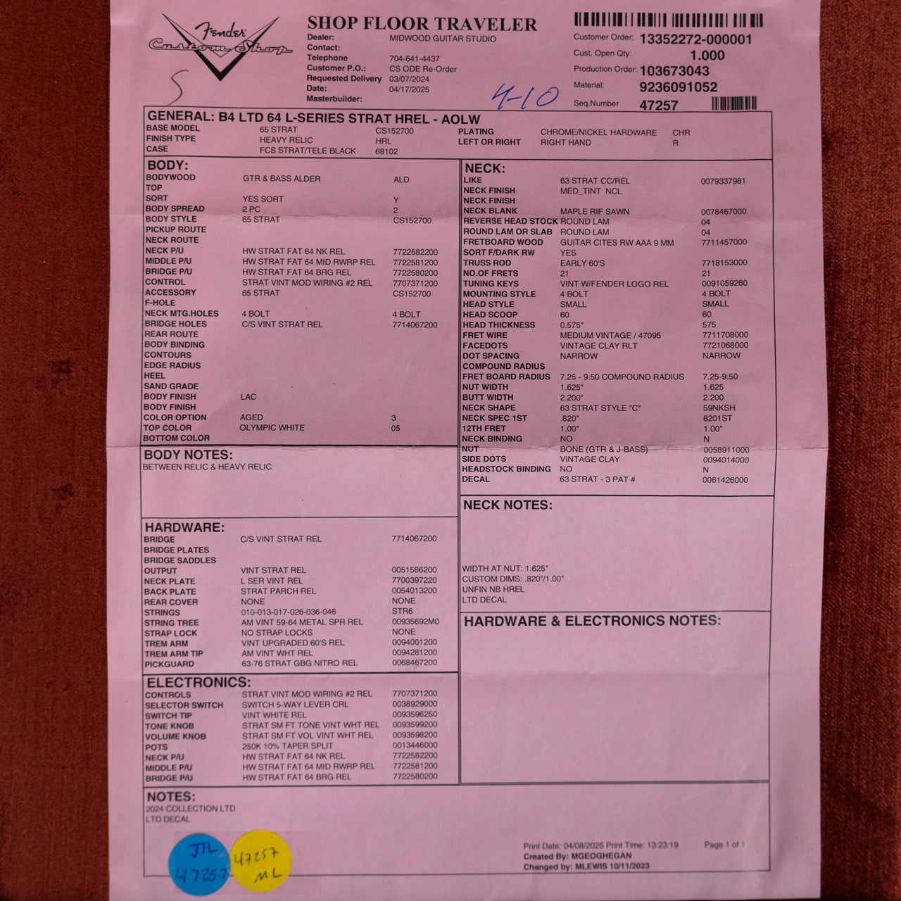Fender Custom Shop Limited Edition 1964 L-Series Stratocaster Heavy Relic - Aged Olympic White