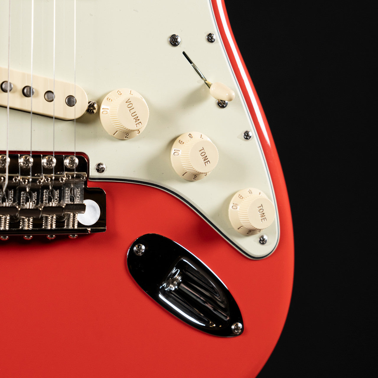Hardware: Pure Vintage Tremolo w/ bent steel saddles, Fender Deluxe tuners, Nickel/Chrome