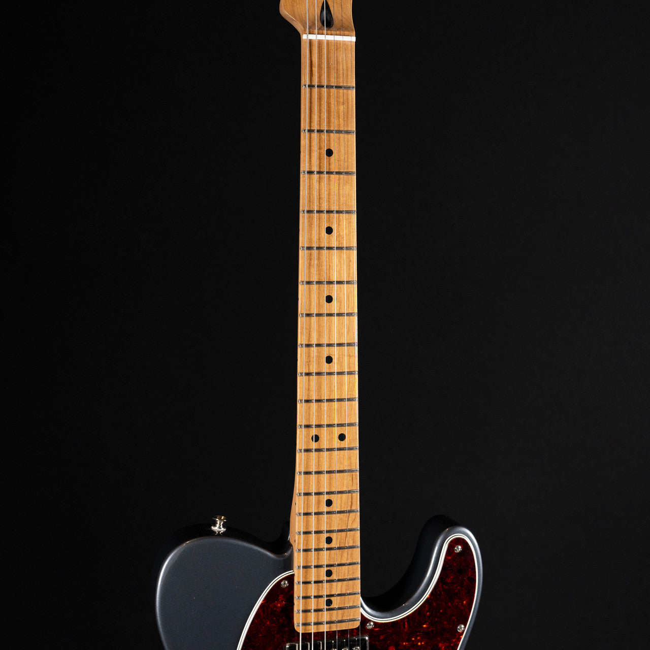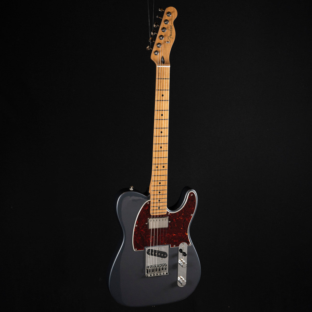 Finished in a sleek Charcoal Frost Metallic, this limited-run Telecaster features a roasted maple neck and fingerboard—a rare and premium upgrade at this price point. Roasting not only enhances the wood's stability and resonance but also delivers a warm, broken-in feel and a smooth, fast-playing surface.
