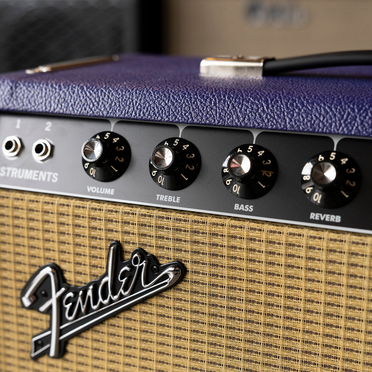 This limited-edition FSR (Factory Special Run) reissue of the iconic Fender ’65 Princeton Reverb delivers classic Fender tube tone with a fresh visual twist. The rich plum tolex adds flair, while the Celestion Greenback speaker brings more growl and breakup compared to the usual Jensen/ Oxford 10″, giving it added midrange punch when driven—especially around volume settings above 5. Clean tones remain glassy and dynamic, while pushing it adds vintage-style overdrive. Perfect for studio, boutique gigs, or home use.