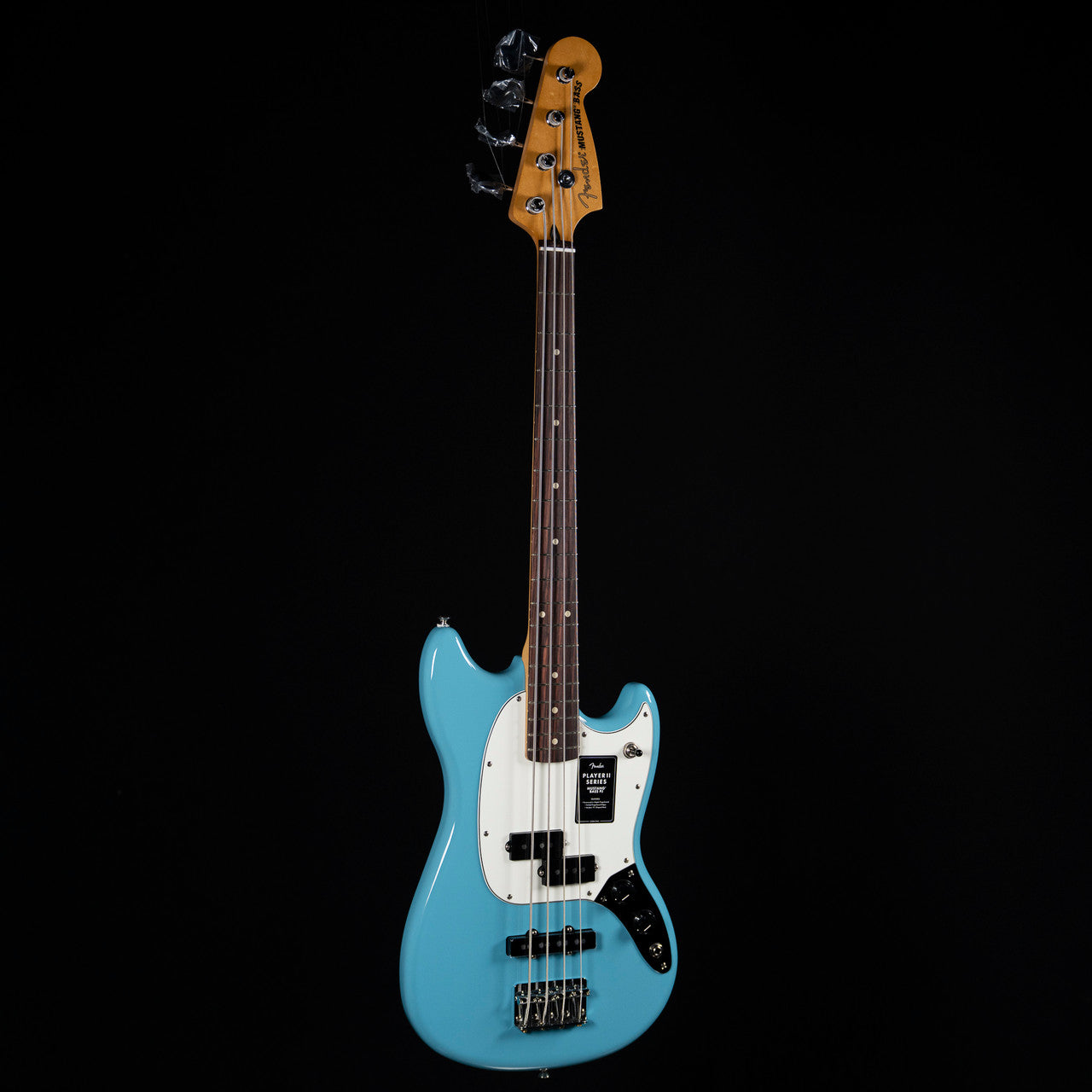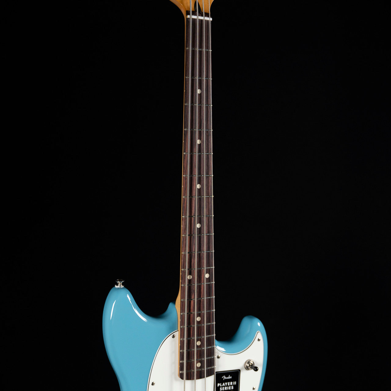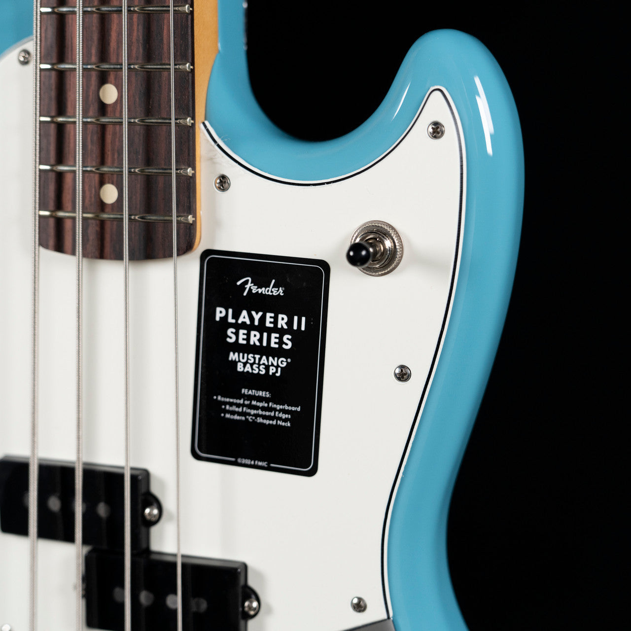 Here we have the all new Fender Player II Mustang Bass PJ in Aquatone Blue. Featuring a Rosewood Fretboard with rolled edges, modern "C" neck profile, 9.5" Radius and open gear tuning machines. Incredibly fun to play, lightweight and full of vintage vibe. At this price, we couldn't recommend a nicer bass. Comes with a full setup from our in house luthier.