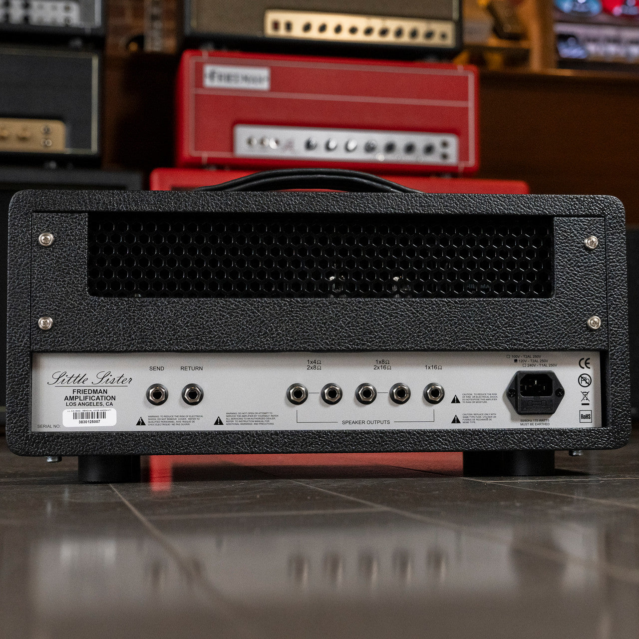 The Little Sister tube amp features all the beautiful finishing and solid construction that you would expect from a Friedman amplifier. The hand crafted in the USA cabinetry utilizes tongue and groove Baltic Birch construction. Designed to take pedals and loves boosts, OD’s, phasers, flangers, tremolos and wahs, while the ultra-transparent series effects loop handles your time-based effects pedals and rack units. The Little Sister from Friedman Amplification, a real screamer and she fits in your backseat!