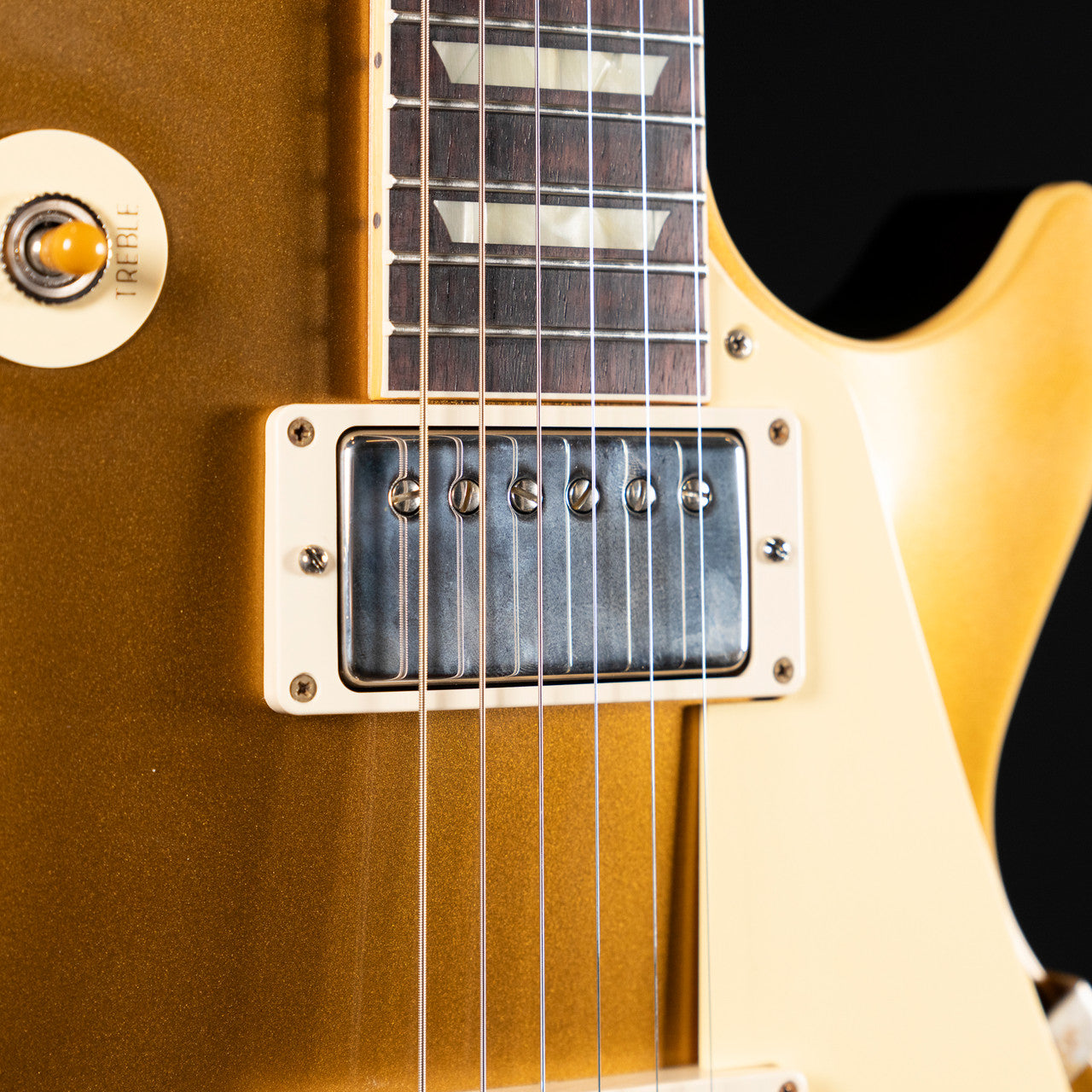 The iconic '57 Goldtop has been the tool of choice for countless guitar heroes. Its elegant gold finish, classic solid mahogany/maple construction and versatile humbucking pickups represent everything one could possibly need in a Les Paul model. This authentic recreation exemplifies Gibson Custom Shop's tireless quest for accuracy to the original year of production, from the woods to the construction to the parts and precise contours throughout. Each Custom Shop Reissue is every bit the instrument and statement piece as the priceless vintage examples, providing an ownership experience that is endlessly fun.
