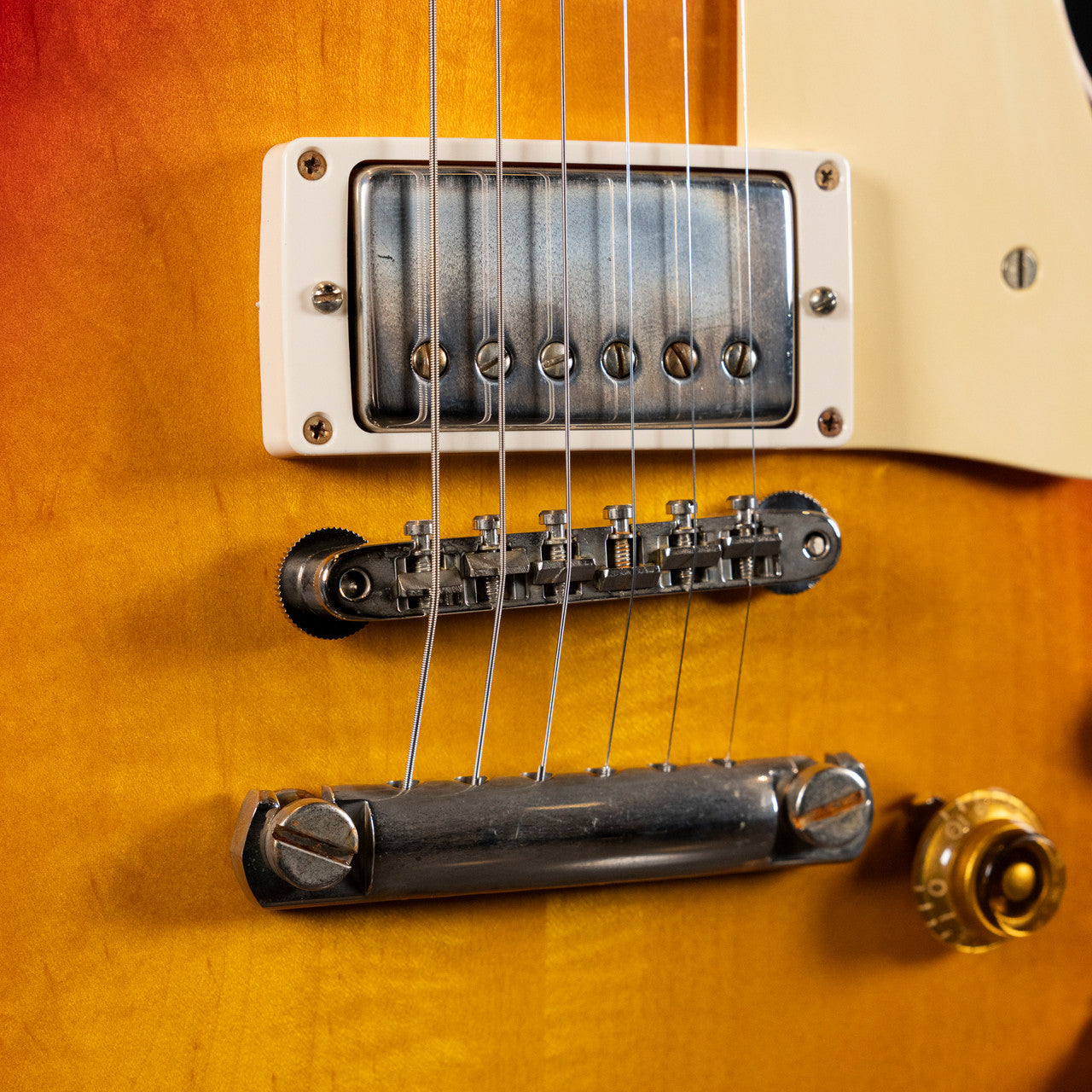 This Gibson Custom 1958 Les Paul Standard Reissue captures the essence of the original “’58 Burst”—a plain maple top, chunky neck, and tone for days. Finished in a Washed Cherry Sunburst Nitro VOS, it pairs a 2-piece maple top with a lightweight mahogany body for the perfect blend of warmth and bite. The big 50s Rounded Medium “C” neck and narrow/tall historic frets make for a full, authentic feel, while a set of Custombucker Alnico III pickups delivers that unmistakable vintage Les Paul tone—clear, dynamic, and powerful.