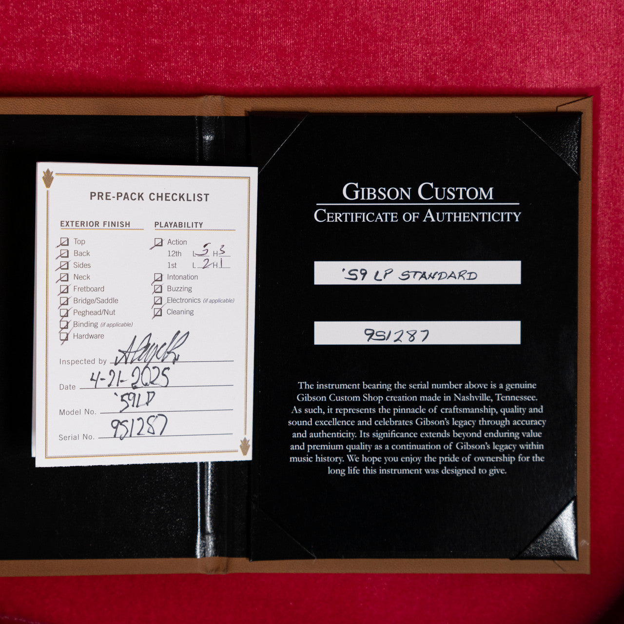 Gibson Custom's 1959 Les Paul Standard Reissue is not just a tribute to the priceless original models -- it's a clone of them. From laser-scanned dimensions to chemically-recreated plastics to color-matched shades of sunburst, every element has been rendered in unbelievable detail. It represents the culmination of decades of work by Gibson Custom's expert team -- a tireless quest to bring accuracy and authenticity to the hands of fans. It’s the definition of cool, and it's the best representation of the 1959 Les Paul Standard since Gibson Custom began making Historic Reissues over twenty-five years ago.