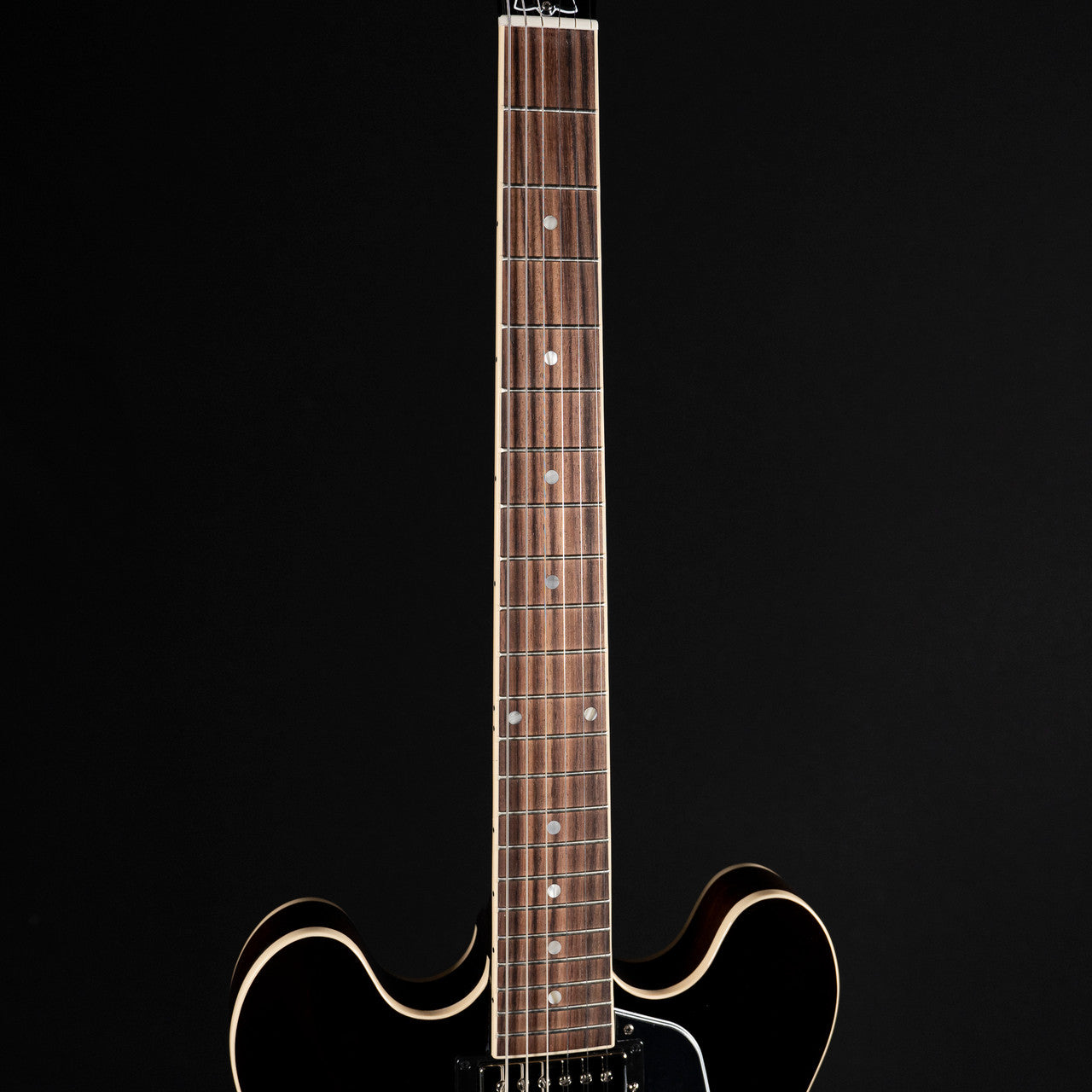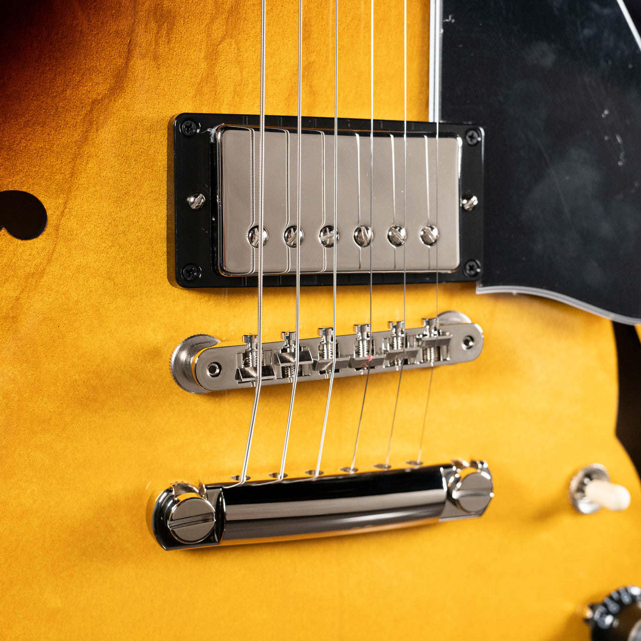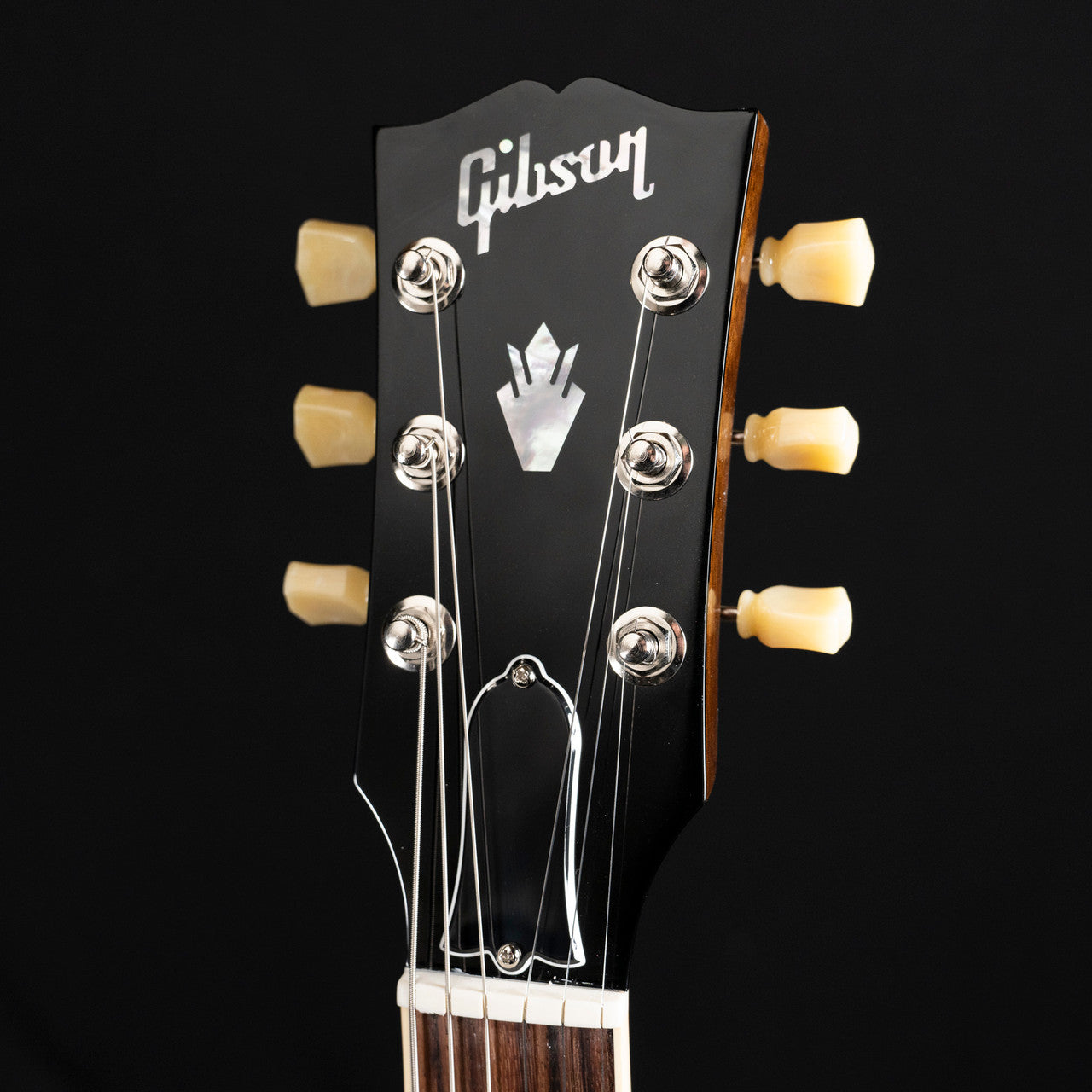 The Gibson ES-335 is the cornerstone of the Gibson ES™ line-up. From its inaugural appearance in 1958, the Gibson ES-335 set an unmatched standard. The acrylic dot inlay rosewood fingerboard on a Rounded "C" mahogany neck reminds players where it all started. Gibson's T-Type humbucking pickups are paired with our handwired control assembly. The result is that versatile Gibson ES tone that players have craved for over 60 years. Tuning stability and precise intonation are provided by the Vintage Deluxe tuners with Keystone buttons, paired with a lightweight Aluminum ABR-1 bridge and Stop Bar tailpiece, anchored by steel thumb-wheels and tailpiece studs.