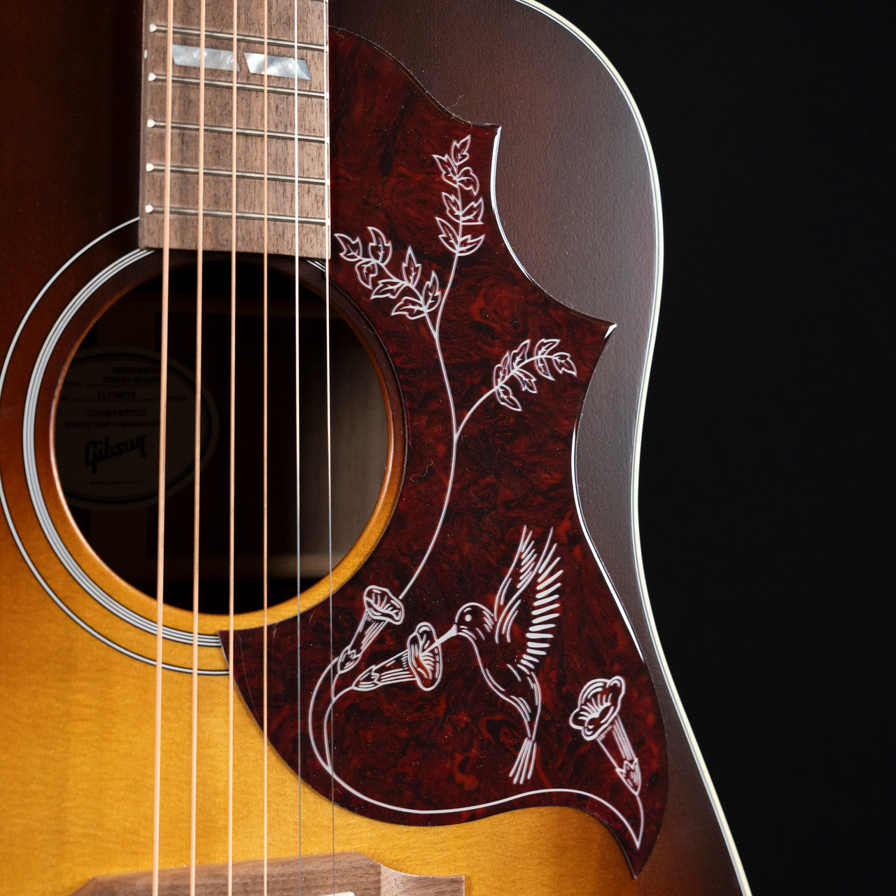 The Hummingbird™ Studio Walnut continues Gibson’s long history of producing world-famous square shoulder body designs, such as the Hummingbird, Dove™, and Songwriter models. The updated Hummingbird Studio Walnut is hand-built using all solid tonewoods and is equipped with an Advanced Response profile utile neck for smooth, easy playability. It features a full-depth body for enhanced tonal response and a satin nitrocellulose finish, giving it the look and feel of a long-treasured musical companion. Available in Satin Natural and Satin Walnut Burst finishes, the Hummingbird Studio Walnut has an L.R. Baggs™ Element Bronze active under-saddle piezo pickup for easy studio-quality plug-and-play anywhere. Packaged in an included hardshell case for portability, this is the Hummingbird you’ve been waiting for!