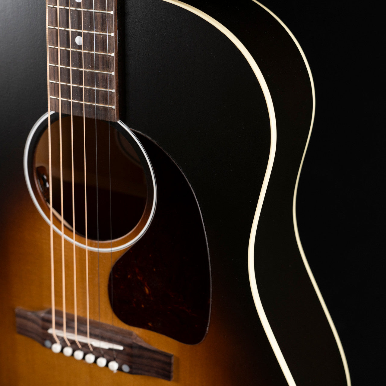 The J-45 Special features Gibson’s Concert Body Depth ideal that is for songwriting, rehearsing, cross-town gigging, and home-recording. They are lightweight-feature rich editions of Gibson’s world-famous instruments. Now at a new lower price, musicians can now own a professional Gibson acoustic guitar featuring Gibson’s Concert Body Depth that has been calibrated to deliver a tighter balance of lows, mids, and highs. These guitars are ideal for the musician “on the go” who desires an authentic Gibson that is easy to transport, more comfortable to hold, and produces a superiorly balanced acoustic sound.