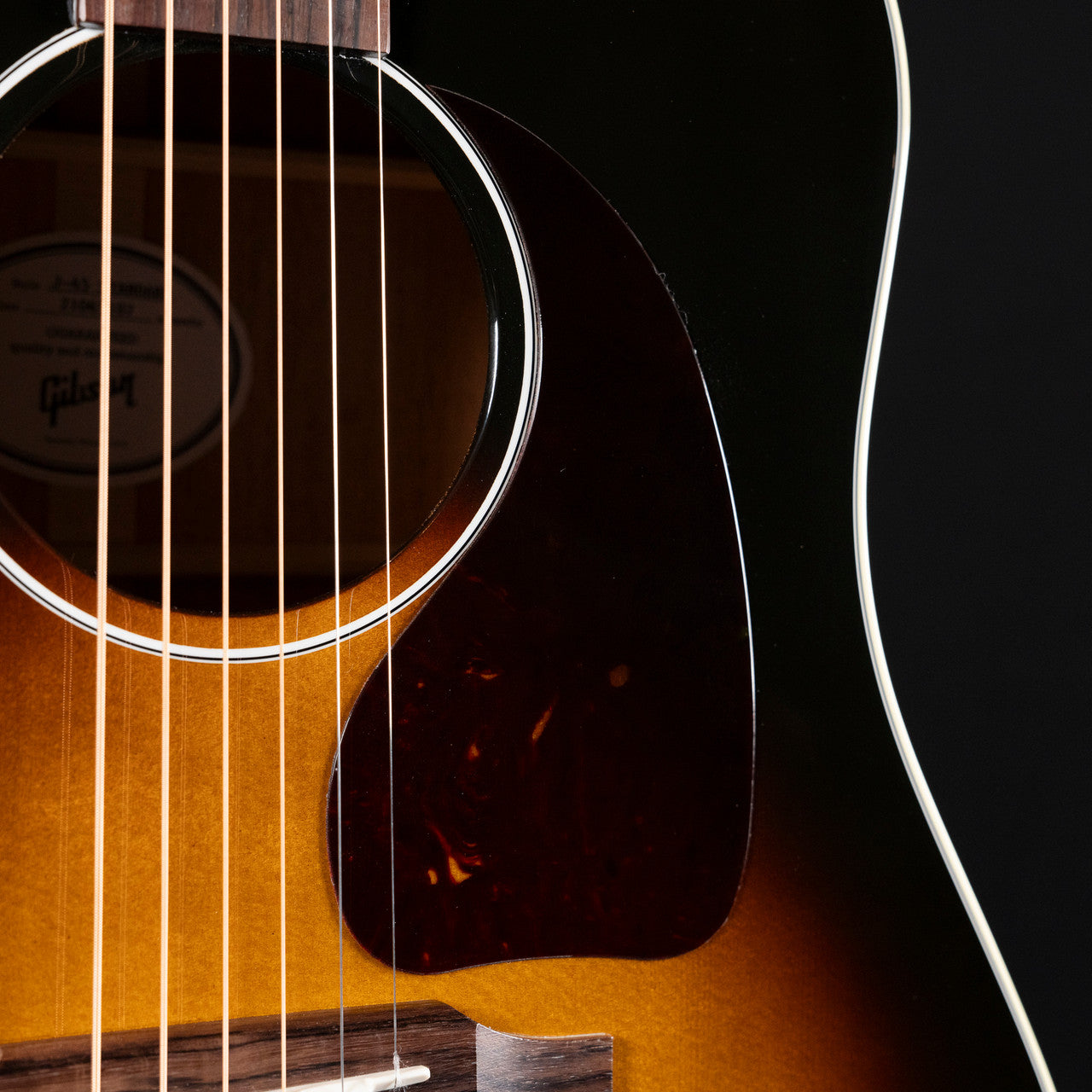 The J-45™ is Gibson's best-selling acoustic of all time. Nicknamed "The Workhorse" and first introduced in 1942, this iconic acoustic has become the cornerstone of its round-shoulder, dreadnought line. World-renowned for its full, balanced expression, warm bass, and excellent projection, the J-45 has been refined to carry this legacy to new heights. The Gibson J-45 Standard delivers a sound with incredible dynamic range, warm mids, and a tight punchy bass. Equipped with L.R. Baggs™ VTC under-saddle pickup and preamp, it is stage and studio-ready from the moment you take it out of the included hardshell case.