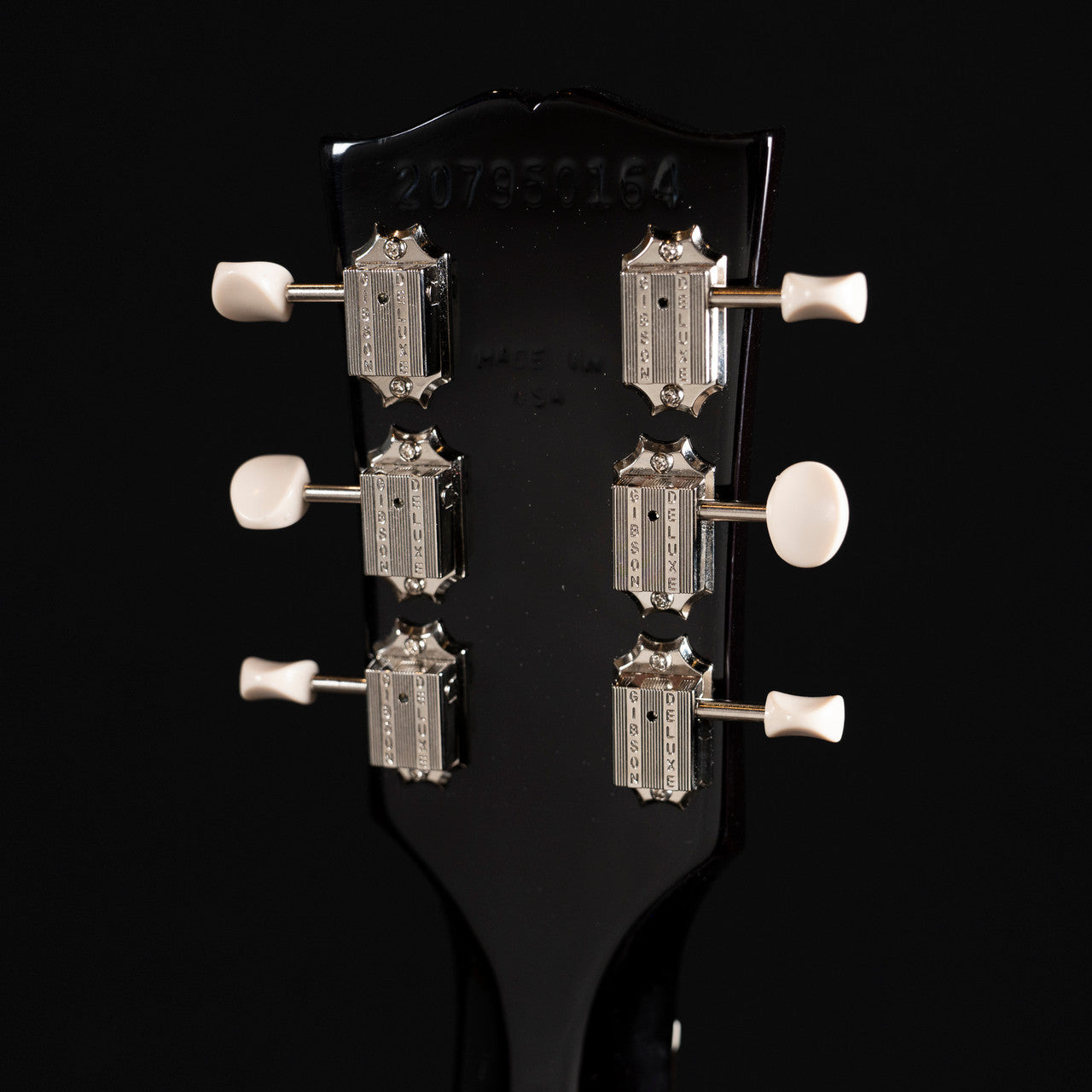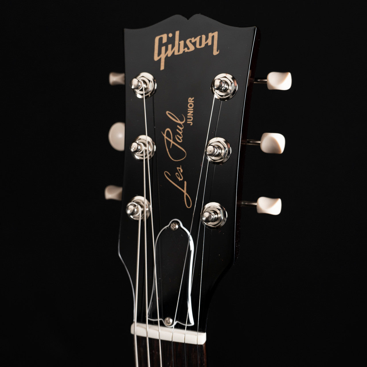 The Les Paul Junior returns to the classic design that made it relevant, played and loved -- shaping sound across generations and genres of music. It pays tribute to Gibson's Golden Era of innovation and brings authenticity back to life. Introduced as an affordable option for students and beginners in 1954, the Les Paul Junior has been embraced by musicians for over 60 years. The single cutaway slab mahogany body, single dogear P-90 pickup, single volume and tone controls all add up to a whole lot of guitar which is greater than the sum of its parts. The fat 50's-style neck profile and wraparound bridge add to the equation for rock solid tone. Available in Tobacco Burst and the new Ebony finish with tortoise shell pickguard.