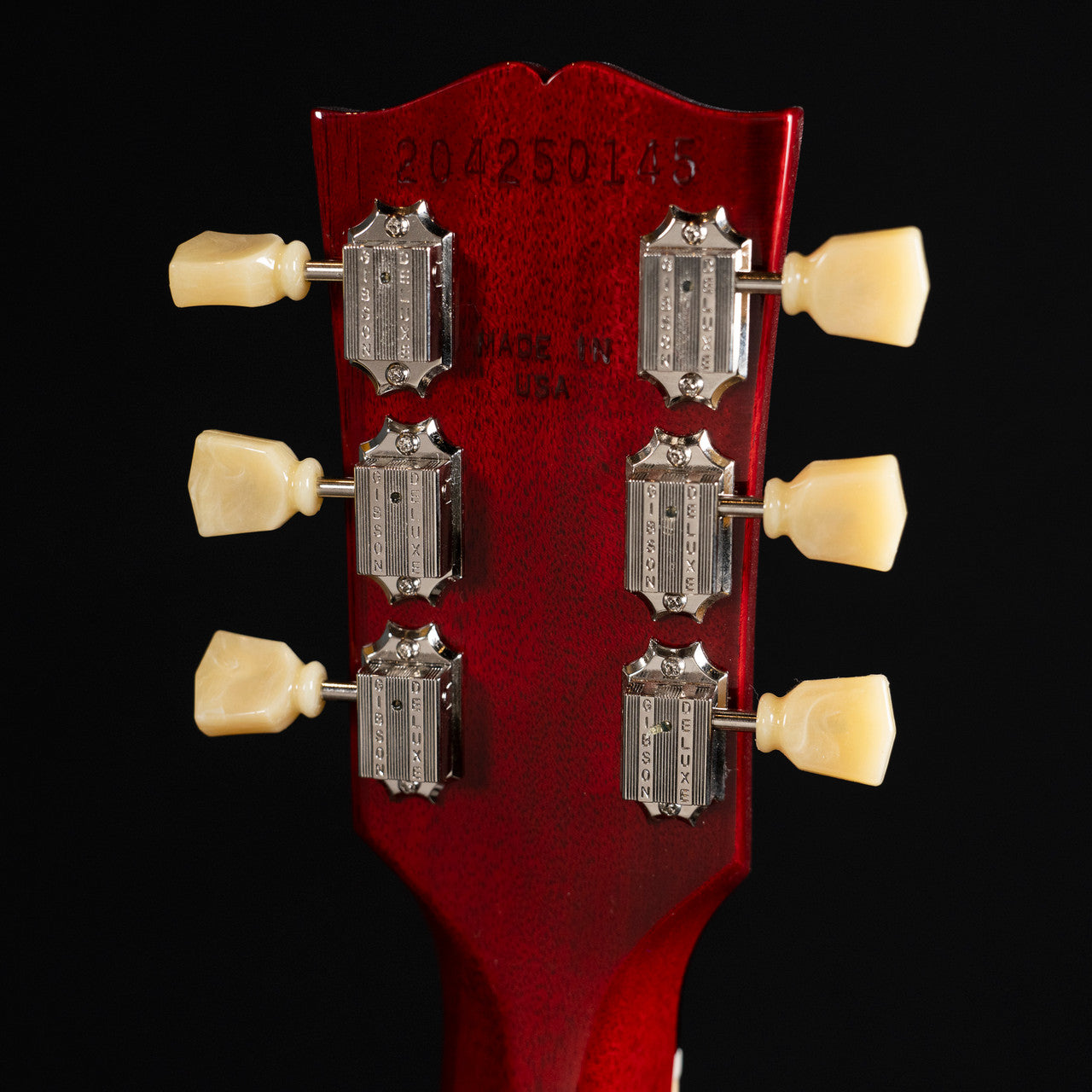 The new Les Paul™ Standard returns to the classic design that made it relevant, played, and loved – shaping sound across generations and genres of music. It pays tribute to Gibson's Golden Era of innovation and brings authenticity back to life. The Les Paul Standard 50s has a solid mahogany body with a maple top and a rounded 50s-style mahogany neck with a rosewood fingerboard and trapezoid inlays. It's equipped with an ABR-1, the classic-style Tune-O-Matic™ bridge, an aluminum Stop Bar tailpiece, Vintage Deluxe tuners with Keystone buttons, and aged gold Top Hat knobs. The calibrated Burstbucker™ 1 (neck) and Burstbucker 2 (bridge) pickups are loaded with Alnico 2 magnets and wired with audio taper potentiometers and Orange Drop® capacitors.