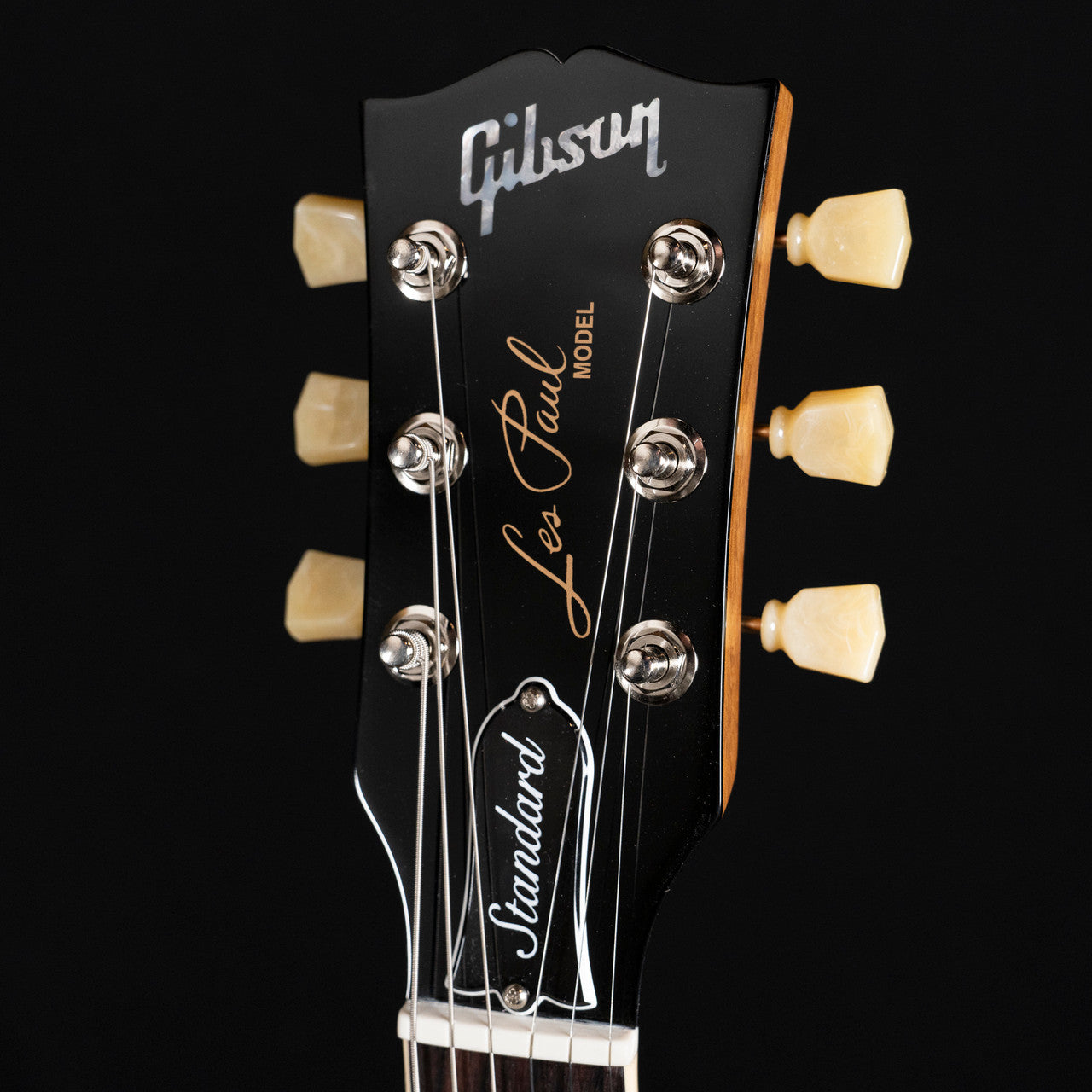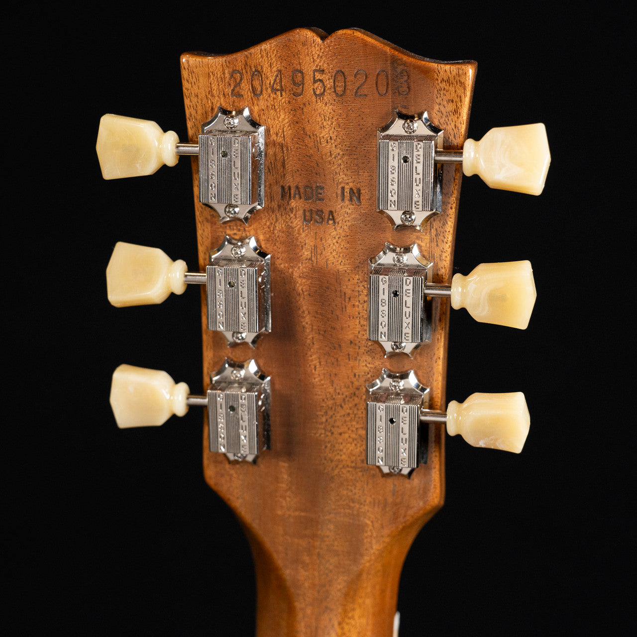 The new Les Paul Standard returns to the classic design that made it famous. It pays tribute to Gibson's Golden Era of innovation and brings authenticity back to life. The Les Paul Standard 50s P-90 has a solid mahogany body with a maple top and a rounded 50s-style mahogany neck with a rosewood fingerboard and trapezoid inlays. It's equipped with an ABR-1, the classic-style Tune-O-Matic™ bridge, an aluminum Stop Bar tailpiece, Vintage Deluxe tuners with Keystone buttons, and Top Hat knobs. The classic P-90 pickups (neck and bridge) are loaded with Alnico 5 magnets, audio taper potentiometers, and Orange Drop® capacitors.