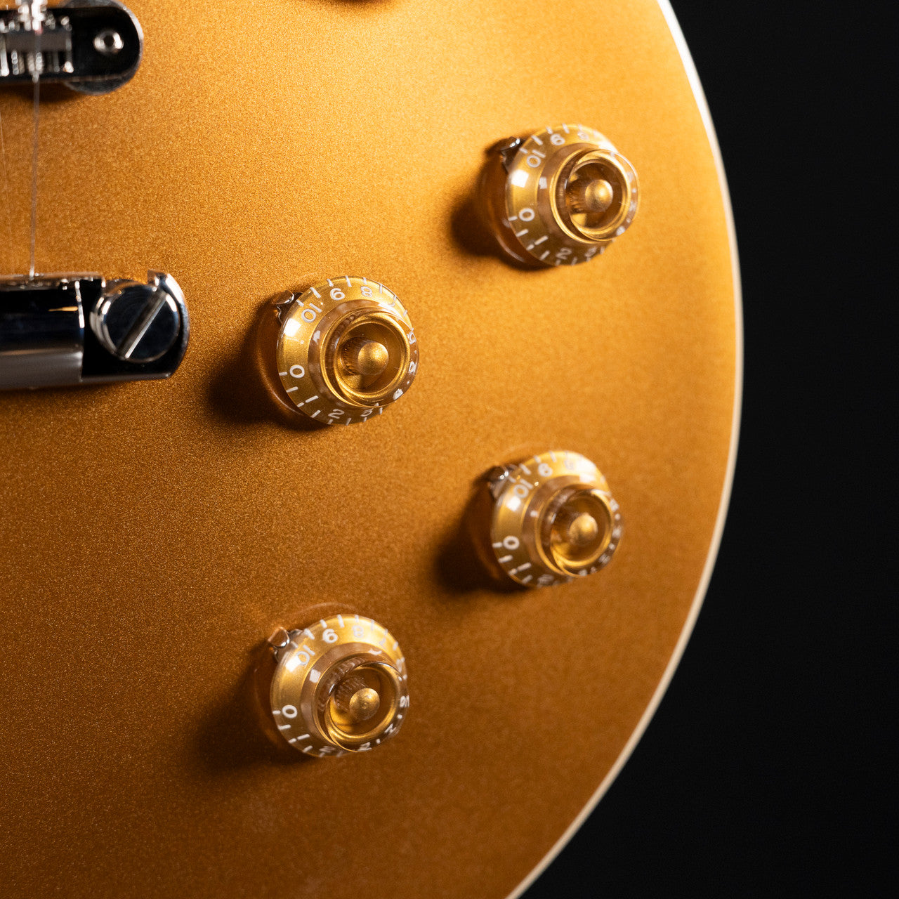 The new Les Paul Standard 50s Plain Top returns to the classic design that made it relevant, played, and loved – shaping sound across generations and genres of music. It pays tribute to Gibson's Golden Era of Innovation and brings authenticity back to life. The Les Paul Standard 50s Plain Top has a solid mahogany body with a plain maple top and a mahogany neck with a rounded, 50s Vintage profile with a rosewood fingerboard and trapezoid inlays. It's equipped with an ABR-1, the classic-style Tune-O-Matic™ bridge, an aluminum Stop Bar tailpiece, Vintage Deluxe tuners with Keystone buttons, and gold Top Hat knobs. The calibrated Burstbucker™ 1 (neck) and Burstbucker 2 (bridge) pickups are loaded with Alnico 2 magnets and wired to audio taper potentiometers and Orange Drop™ capacitors. Now available in vivid custom colors, a hardshell case completes the package.