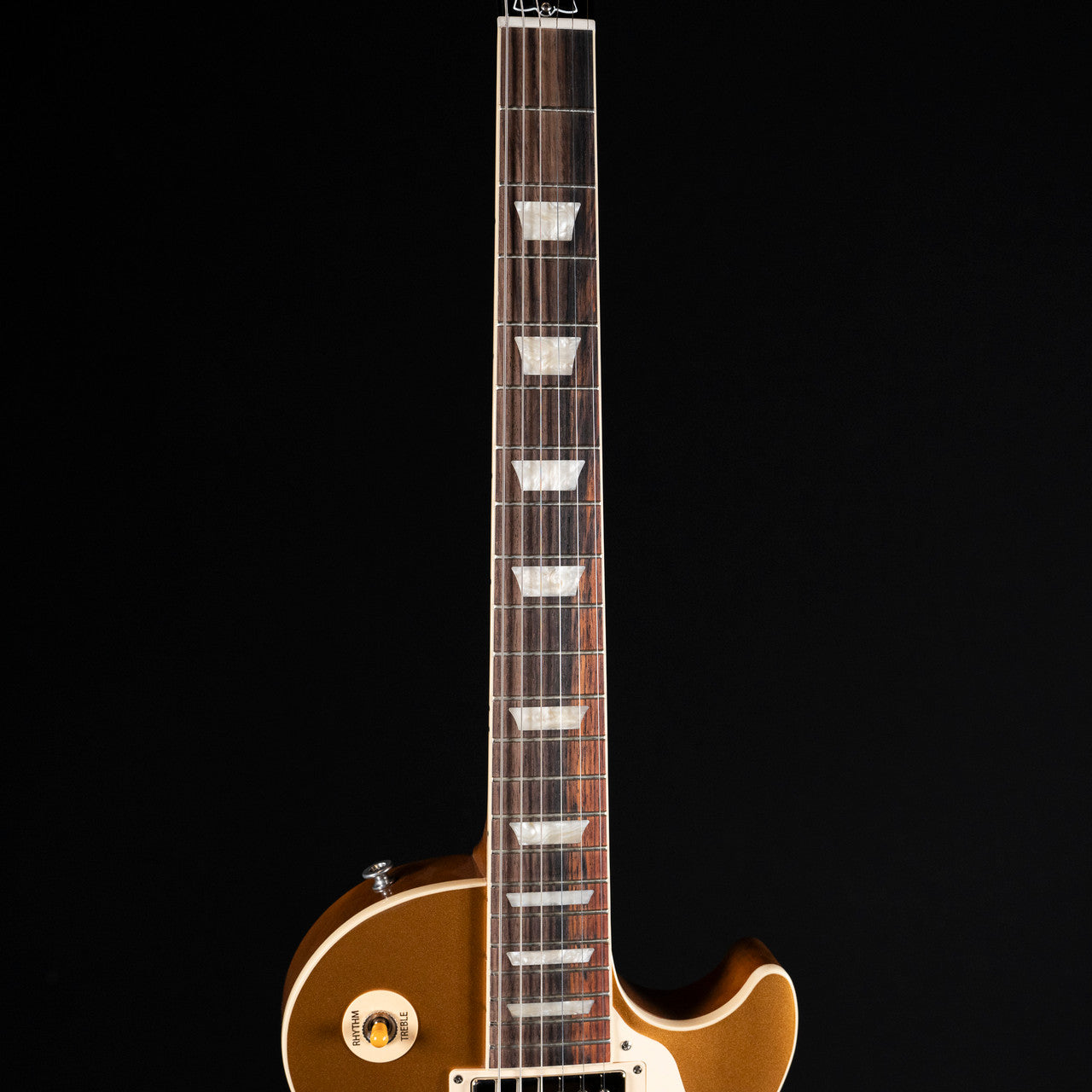 Just in from the Gibson Workshop is a Gibson Les Paul Standard 50s Plain Top with a gorgeous Gold Top. Featuring a plain maple top, mahogany body, vintage 50's neck profile and a set of Gibson Burstbucker pickups. This guitar perfectly recreates that of which created a staple in guitar and music history forever. Replicating tones that have been sought after for over 70 years all while having that classic vintage Les Paul feel. We are thrilled to offer this amazing guitar to you, this is a fun one that will be incredibly hard to put down! Gibson operates by upholding the highest standards of quality and craftsmanship and this guitar is no exception. Comes with a hardshell case and Gibson case candy.