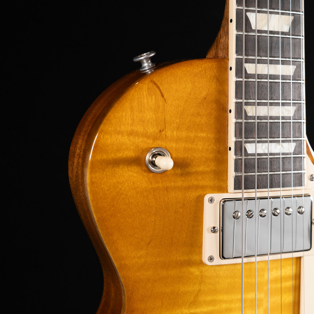 This exceptional guitar features an ultra-modern weight-relieved mahogany body adorned with a beautifully carved AA figured maple cap. Its SlimTaper neck profile provides a comfortable playing experience, while the bound ebony fingerboard, accentuated by acrylic trapezoid inlays, offers both elegance and functionality. Powered by a set of classic ’57 humbucker pickups, the Studio Session delivers a rich, warm tone that’s simply irresistible.