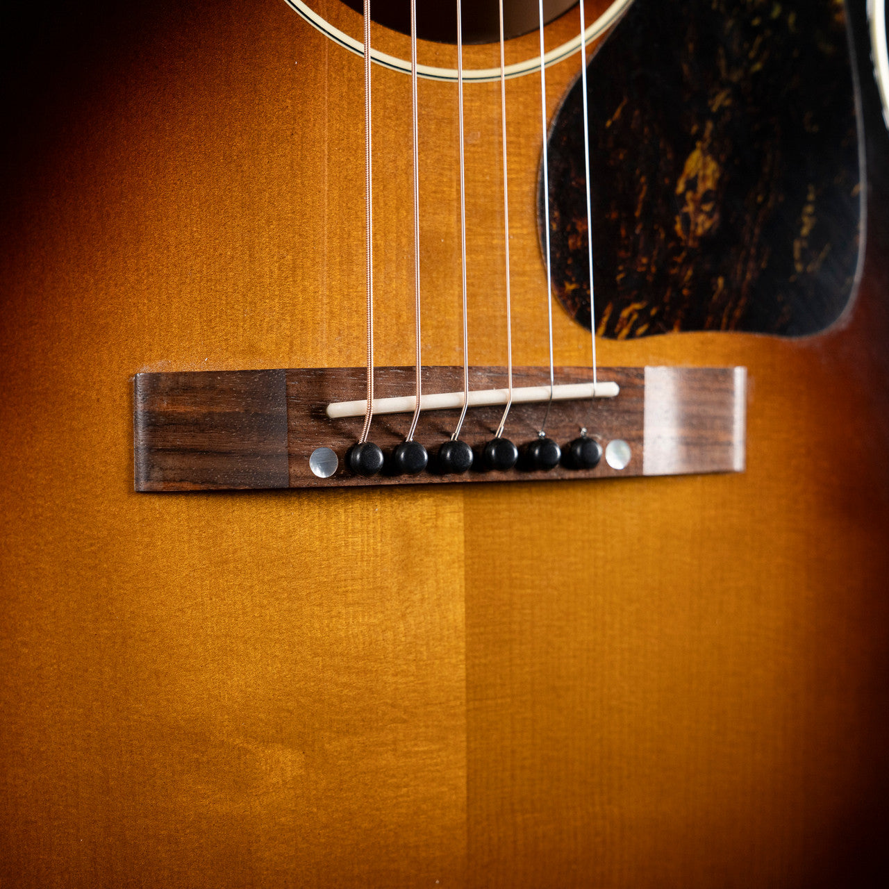 The Gibson Nathaniel Rateliff LG-2 Western is a compact, powerhouse acoustic-electric guitar designed in collaboration with the acclaimed Americana artist. Handcrafted in Bozeman, Montana, this model features a solid Adirondack red spruce top paired with solid mahogany back and sides, offering a warm, articulate tone with impressive projection for its smaller body size. Its 24.75" scale length, vintage V-shaped mahogany neck, and Indian rosewood fingerboard provide exceptional comfort and playability whether fingerpicking or strumming. The guitar’s high headroom and dynamic response make it versatile across folk, soul, R&B, and rock genres—much like Rateliff’s own musical style. Aesthetically, it boasts a Vintage Sunburst nitrocellulose finish, teardrop pickguard, and mother-of-pearl headstock inlays that nod to classic Gibson design. Outfitted with an LR Baggs VTC pickup system for clear, stage-ready amplification, the LG-2 Western is equally suited for the stage, studio, or living room—a perfect choice as a professional-grade workhorse or standout addition to any serious collection.