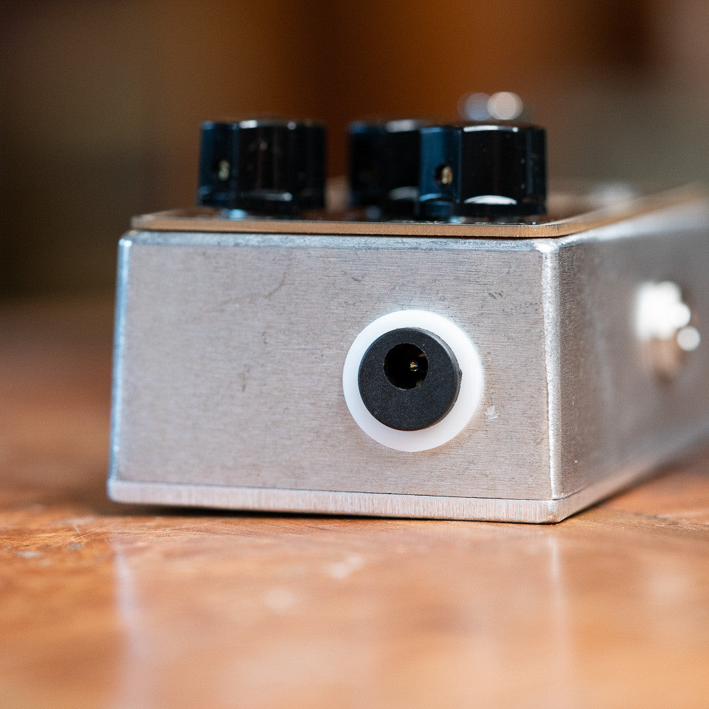 The Gorilla Warfare MKII is powered by 9 volt center tip negative 2.1mm standard power supply cable, built in an aluminum enclosure that’ll outlast most of humanity, with an old school true-bypass switch that feels good to step on, and a faceplate that’s gold and black but in some lights looks desert tan and black (now ain’t that just cool!?).