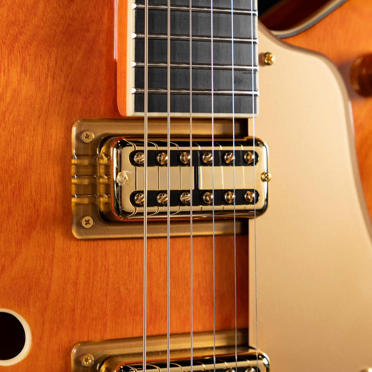 The Gretsch Synchromatic Nashville Hollow Body is where vintage style meets modern playability. With its 2.5” deep laminated maple body, Semi-Arc bracing, and Hi-Fidelity Filter’Tron™ pickups, this guitar delivers the rich, open resonance and classic chime that define the Gretsch sound. Add the Bigsby B60 vibrato tailpiece, and you’ve got expressive pitch control that feels right at home in blues, rock, country, or jazz.