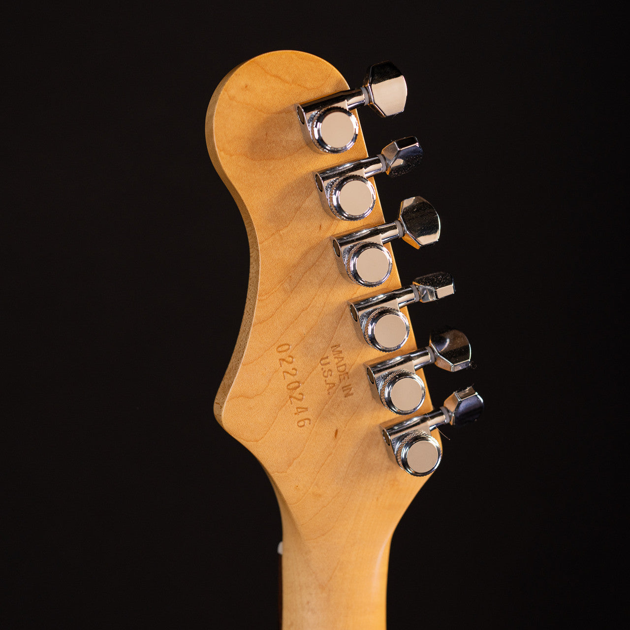 This beauty features a contoured, offset body, a Bigsby B5 Vibrato arm, and a set of Harmony Mini-Humbuckers. The result? A super lightweight, incredibly comfortable instrument that plays and sounds like a dream.
