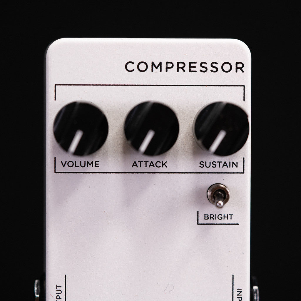 The JHS Pedals 3 Series Compressor is a simple and powerful compressor that will give you everything from subtle tone smoothing to a super squashed sound. The Attack and Sustain knobs allow you to dial in the compression's overall feel and response to your playing, while the Volume knob enables you to set the overall volume at unity or boosted. The Bright toggle engages a brighter EQ so that your tone doesn't get lost in certain situations. The JHS Pedals 3 Series Compressor runs on 9V DC Negative Center power and consumes 8mA.