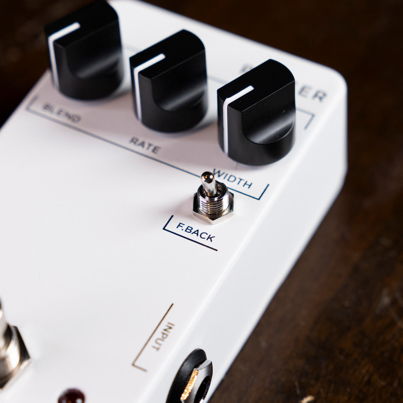 The 3-Series Phaser is a versatile and easy to use six-stage phaser pedal inspired by the classic phaser circuits of the 1970s. It has all the standard phase tones you would expect, but because of its unique Blend control and Feedback toggle, you can achieve an even wider range of modern and experimental tones. The JHS Pedals 3 Series Phaser runs on 9V DC Negative Center power and consumes 70mA.