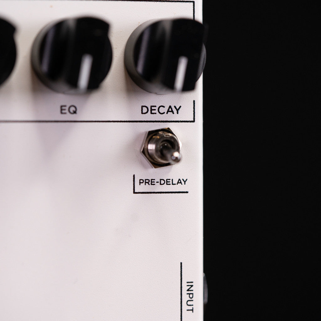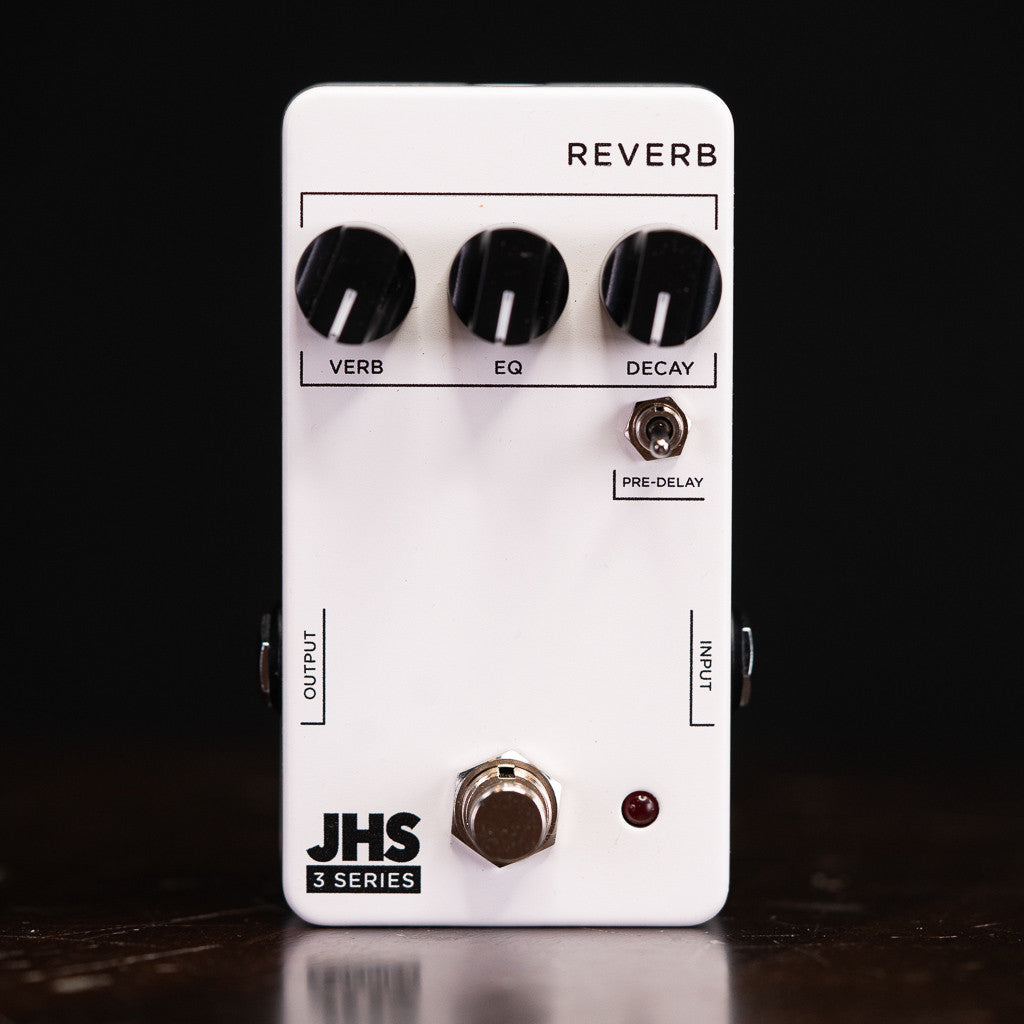 The JHS Pedals 3 Series Reverb is an extremely versatile unit that allows you to create the perfect amount of space for your guitar. You can achieve any reverberation effect, all the way from small room sounds to nearly endless washes of ambiance. The EQ lets you perfectly adjust for a bright or dark texture to the reverb's overall tone. The Pre-Delay knob allows you to select a short delay before the reverb begins. This lets you explore effects ranging between slap-like singing in the shower sounds and spacey spring-like sounds. The JHS Pedals 3 Series Reverb runs on 9V DC Negative Center power and consumes 74mA.
