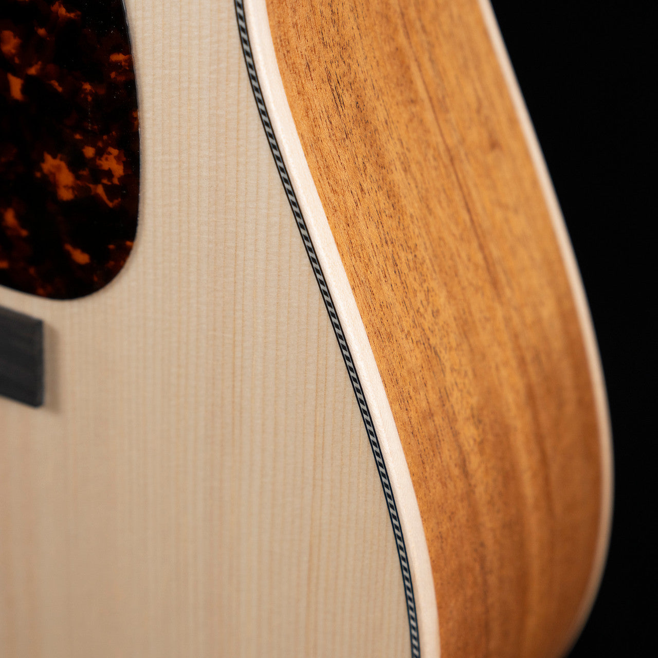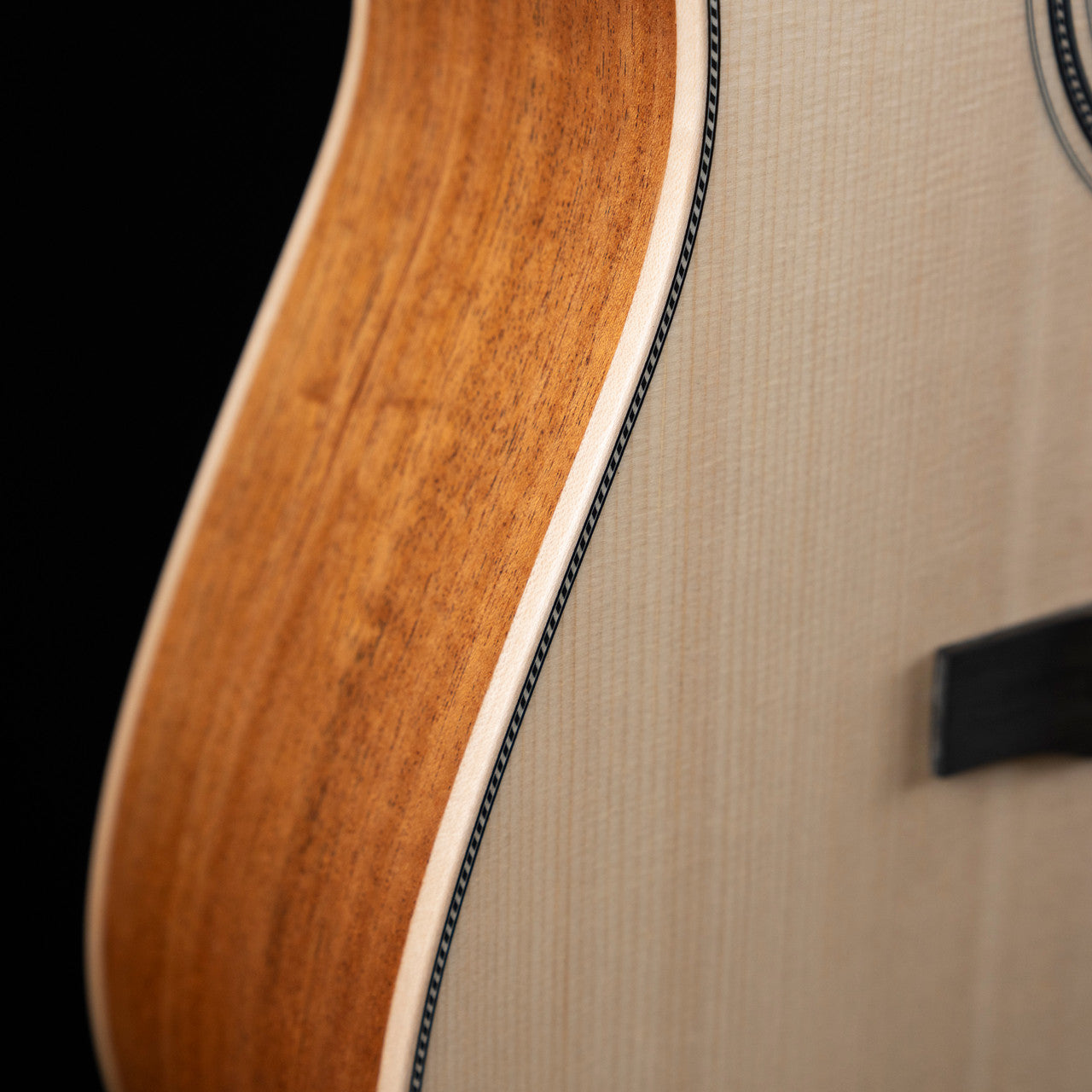 The Larrivée D-40 Legacy Series acoustic guitar is a stunning example of craftsmanship, designed to deliver exceptional tone and performance for serious players. Featuring a solid Sitka spruce top paired with solid mahogany back and sides, this dreadnought-style guitar produces a deep, resonant sound with remarkable clarity and projection. The large body design contributes to a powerful low-end response, while the bright midrange and crisp highs ensure a balanced, well-rounded tone suitable for a variety of musical styles. The D-40 boasts a smooth, comfortable mahogany neck with a traditional ebony fretboard, offering excellent playability and fast action. The intricate inlays, high-end binding, and classic headstock design add a touch of elegance to this already beautiful instrument. Known for its impeccable attention to detail, the D-40’s build quality provides both durability and rich, long-lasting tonal depth. Whether strumming chords or picking with precision, the D-40 excels in both studio recording and live performance situations, making it a top choice for guitarists seeking a high-performance acoustic with vintage-inspired charm.